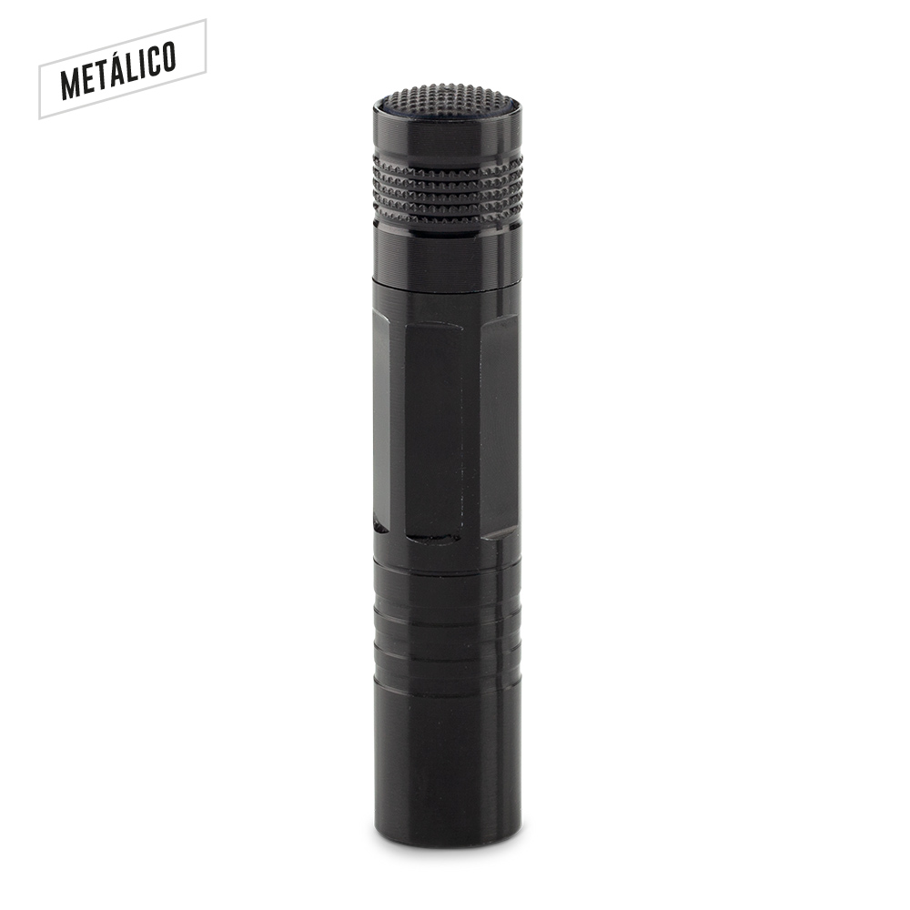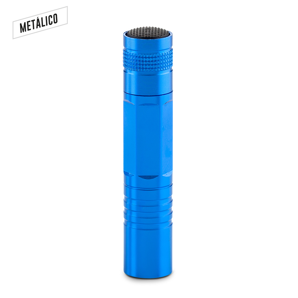 Linterna metálica de 1 LED. 1 pila AA (No incluida). Empaque caja Individual.
