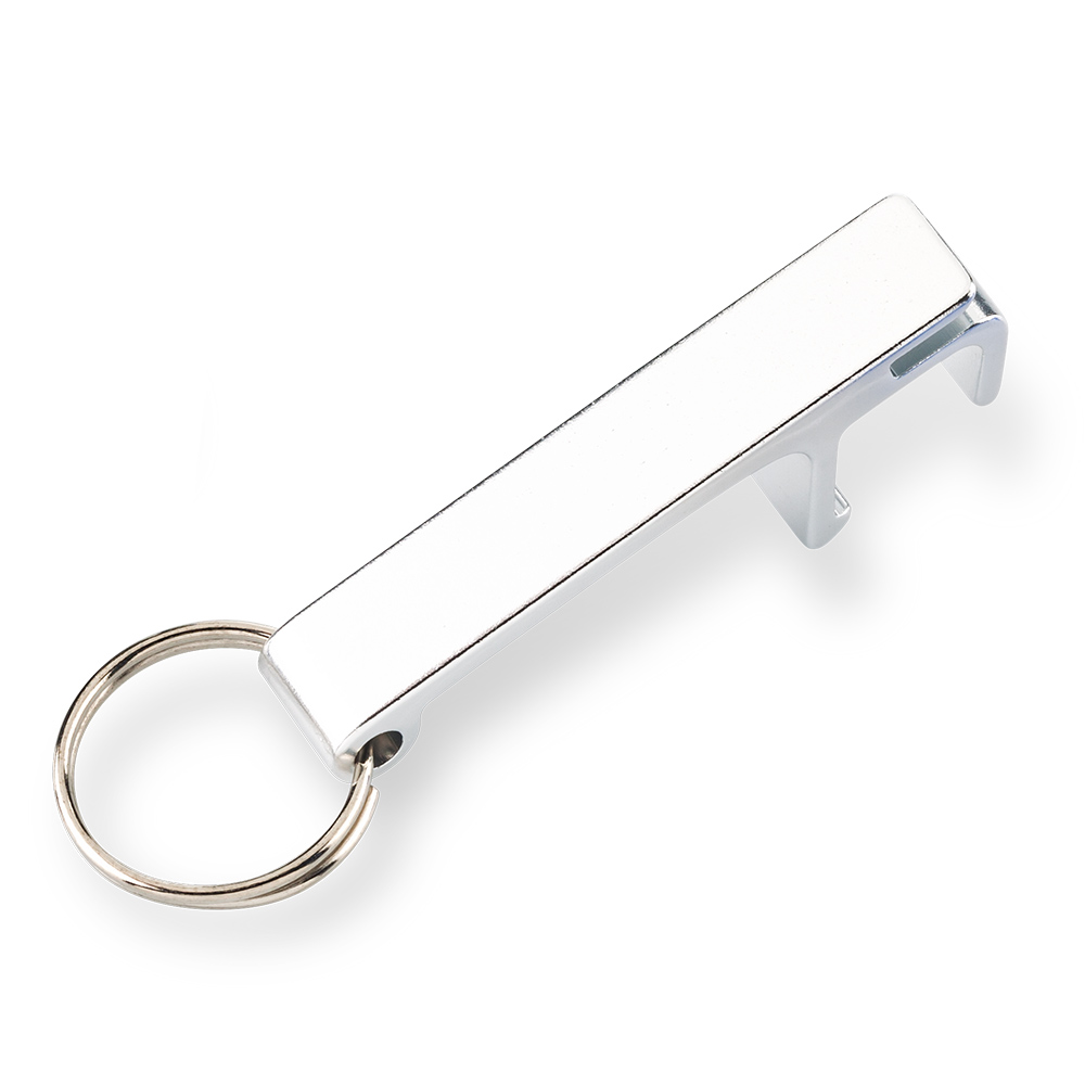 Llavero destapador en aluminio. Con portacelular y pestaña abrelatas.
