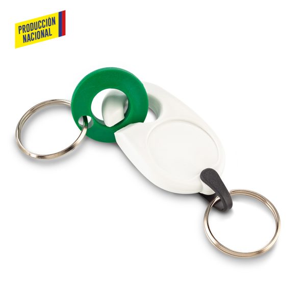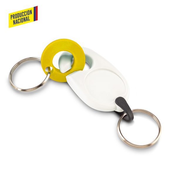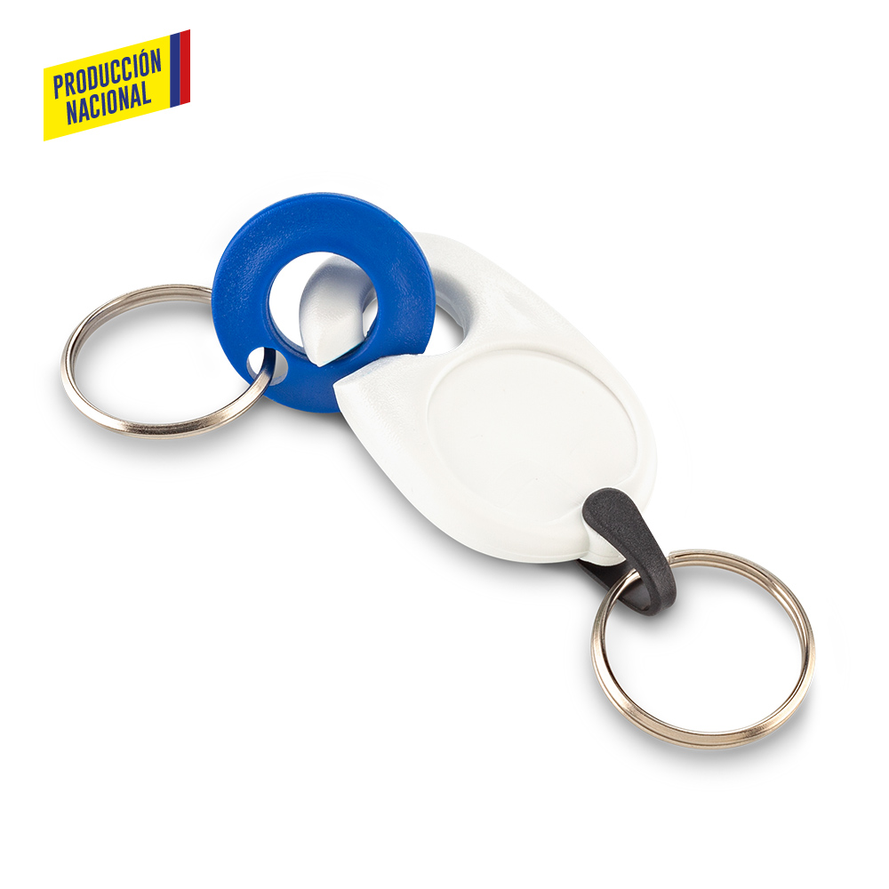 Llavero en plástico ABS, con pieza de encaje de seguridad que permite separarlo y tener dos llaveros.
