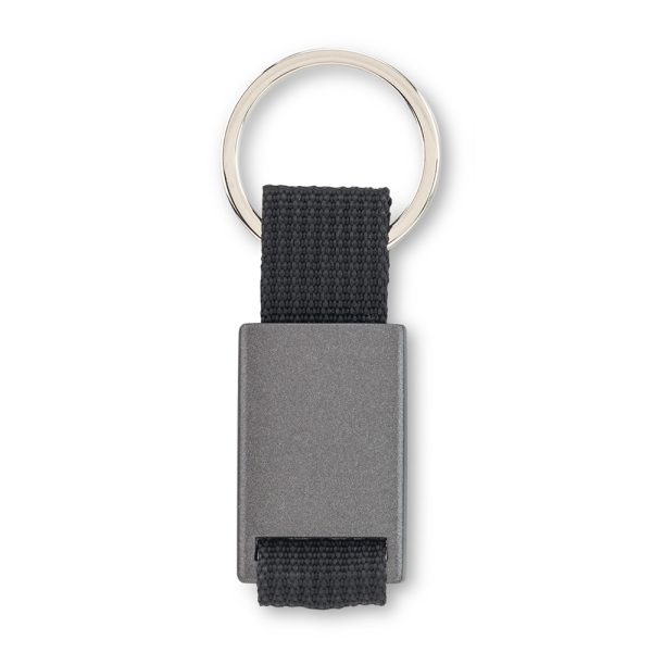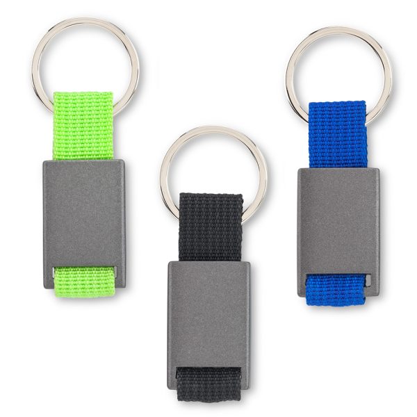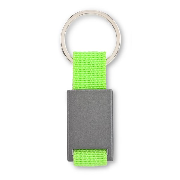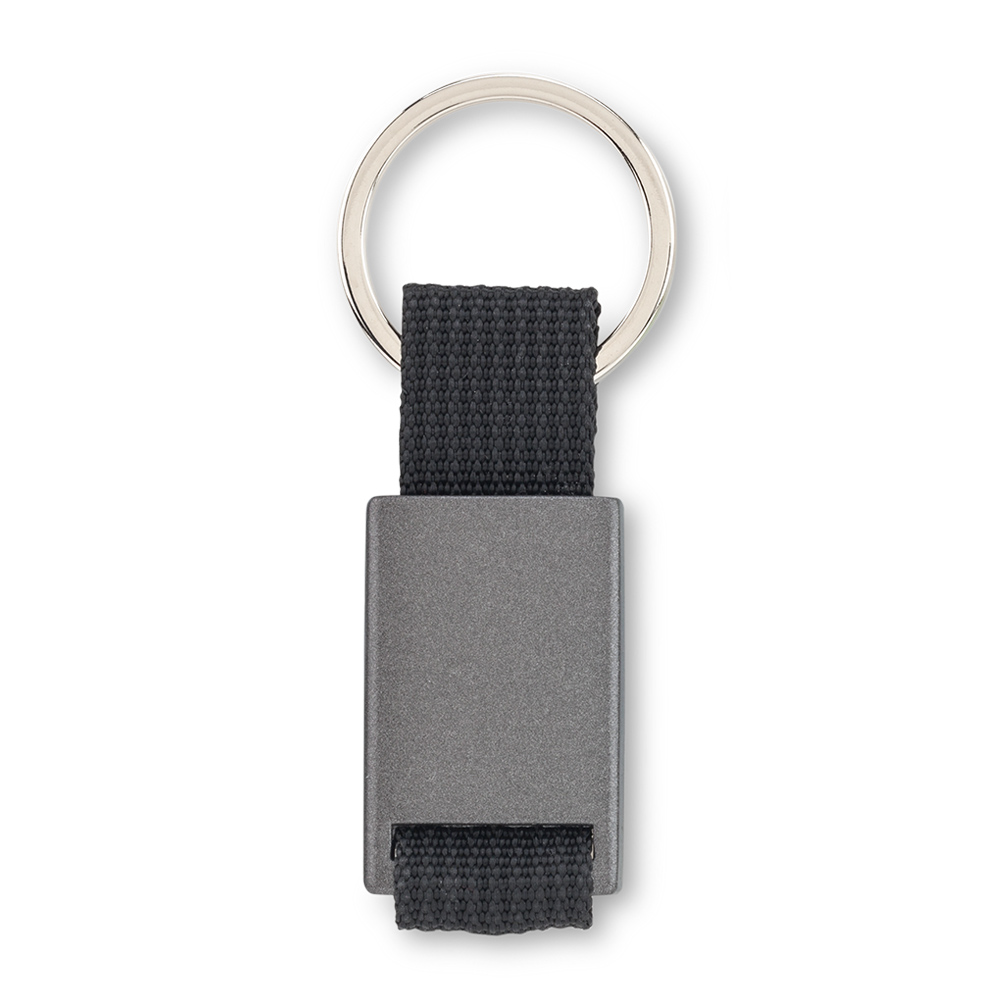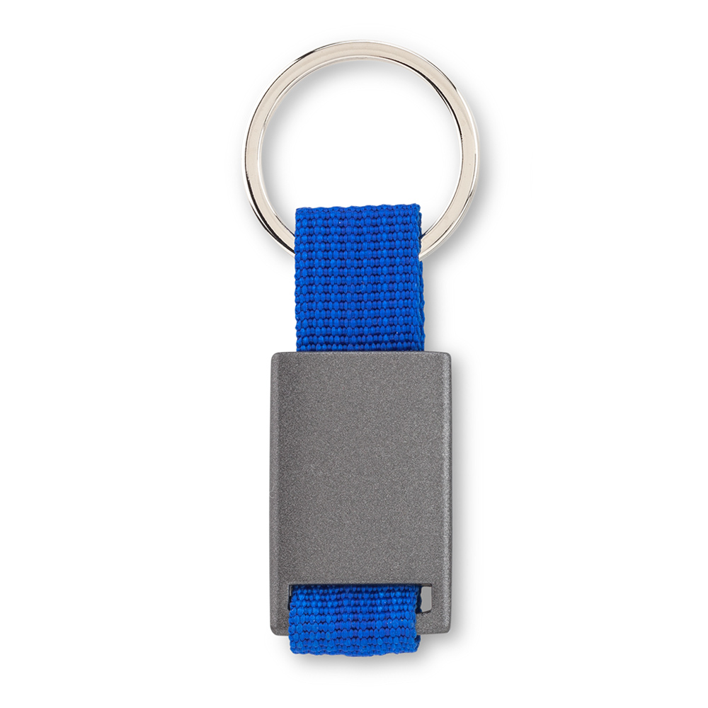Llavero metálico con reata. Empaque Caja Individual. Medidas: 8.5 cm x 2.5 cm Marca: 1 cm / Láser