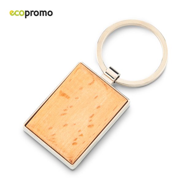 Llavero en metal y madera. Por tratarse de un material natural el tono entre unidades puede variar. Empaque caja individual.