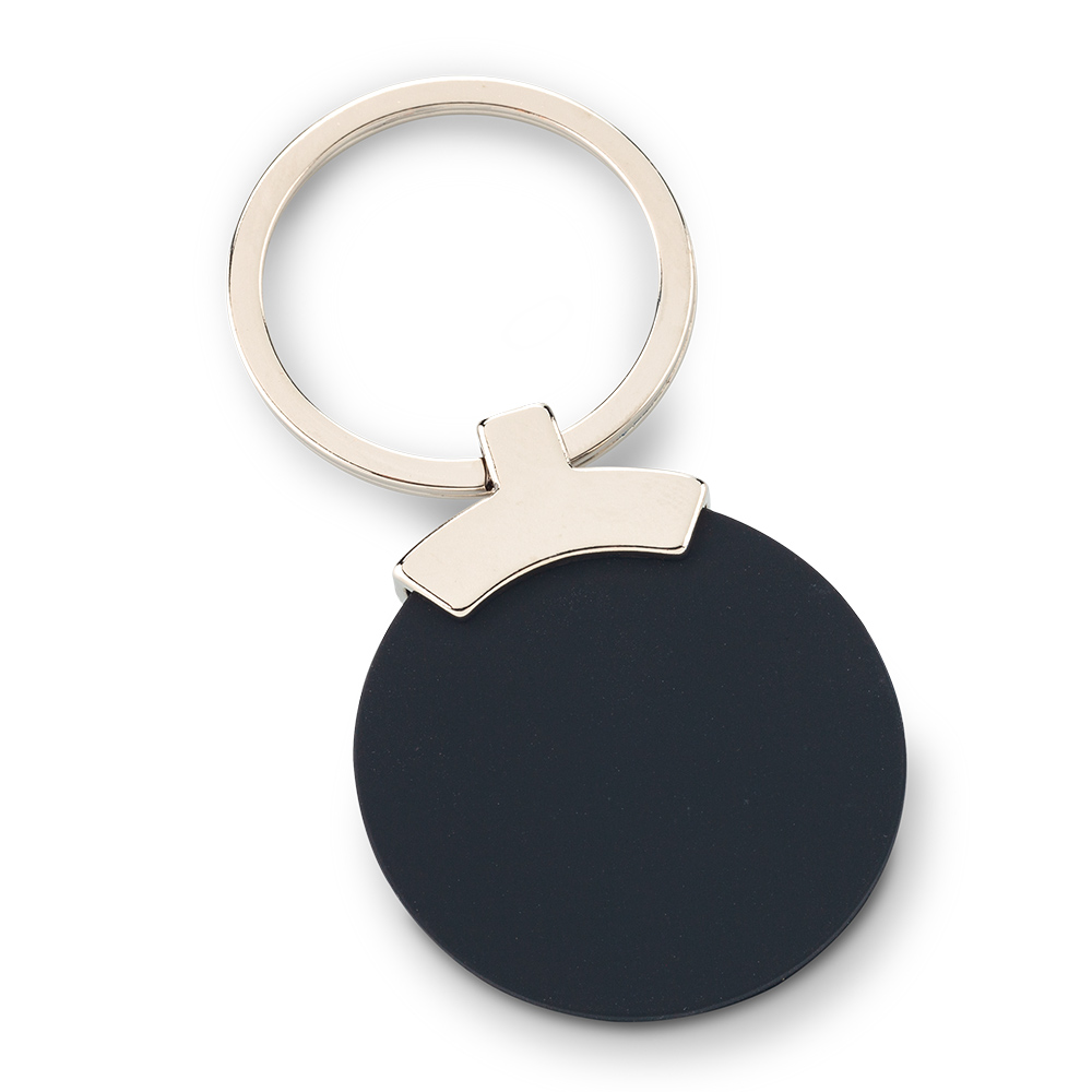 Llavero en silicona y metal. Base blanca para marca en láser en la silicona.