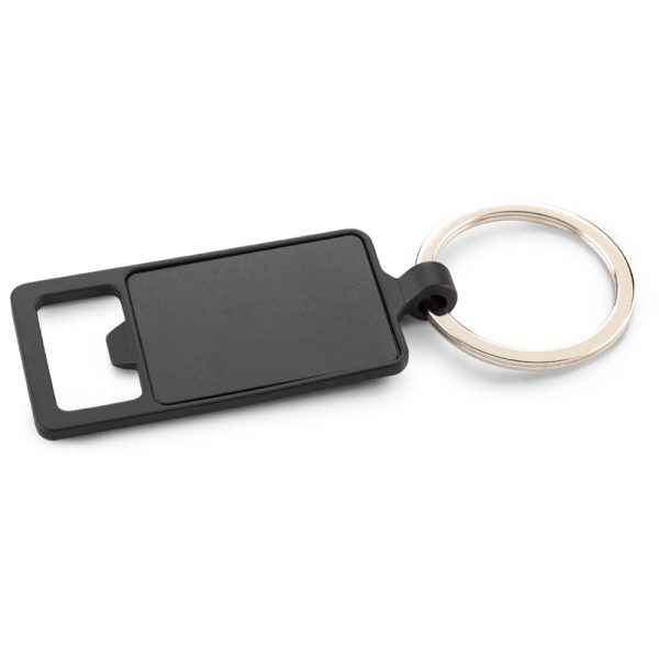 Llavero metálico con destapador. Empaque caja individual.