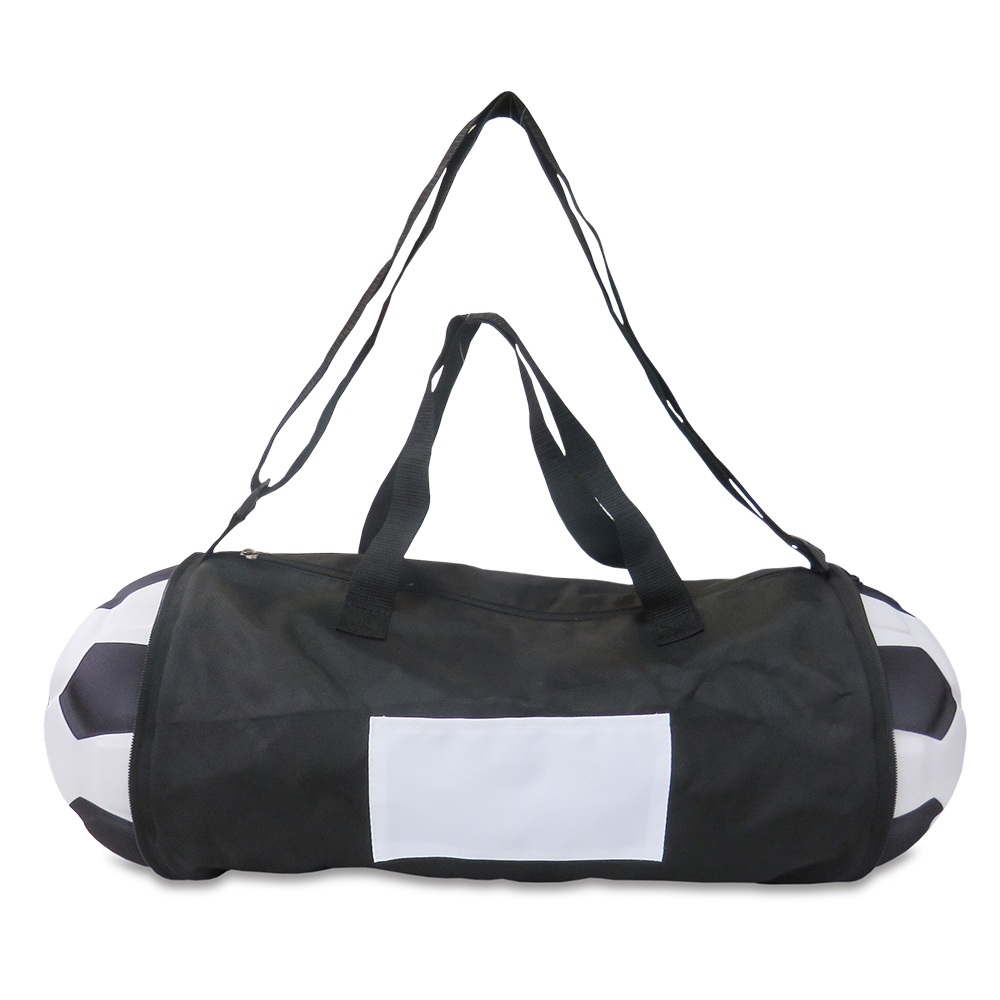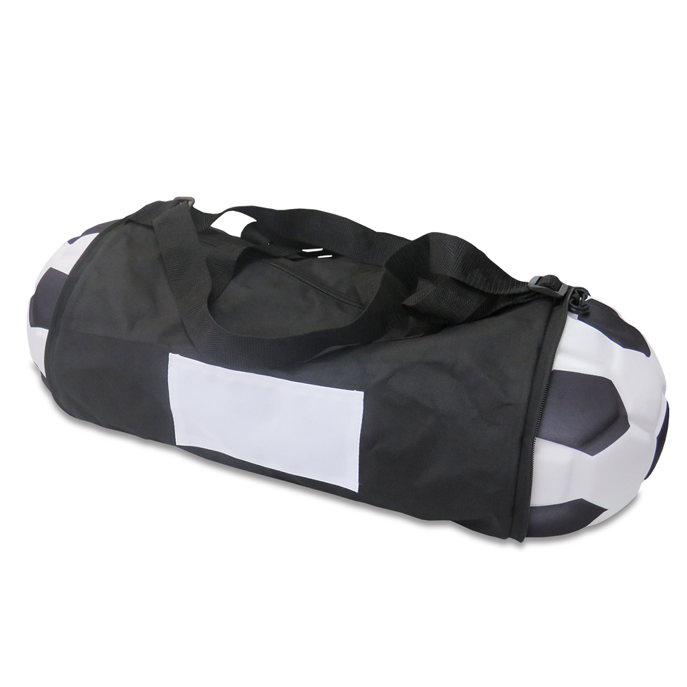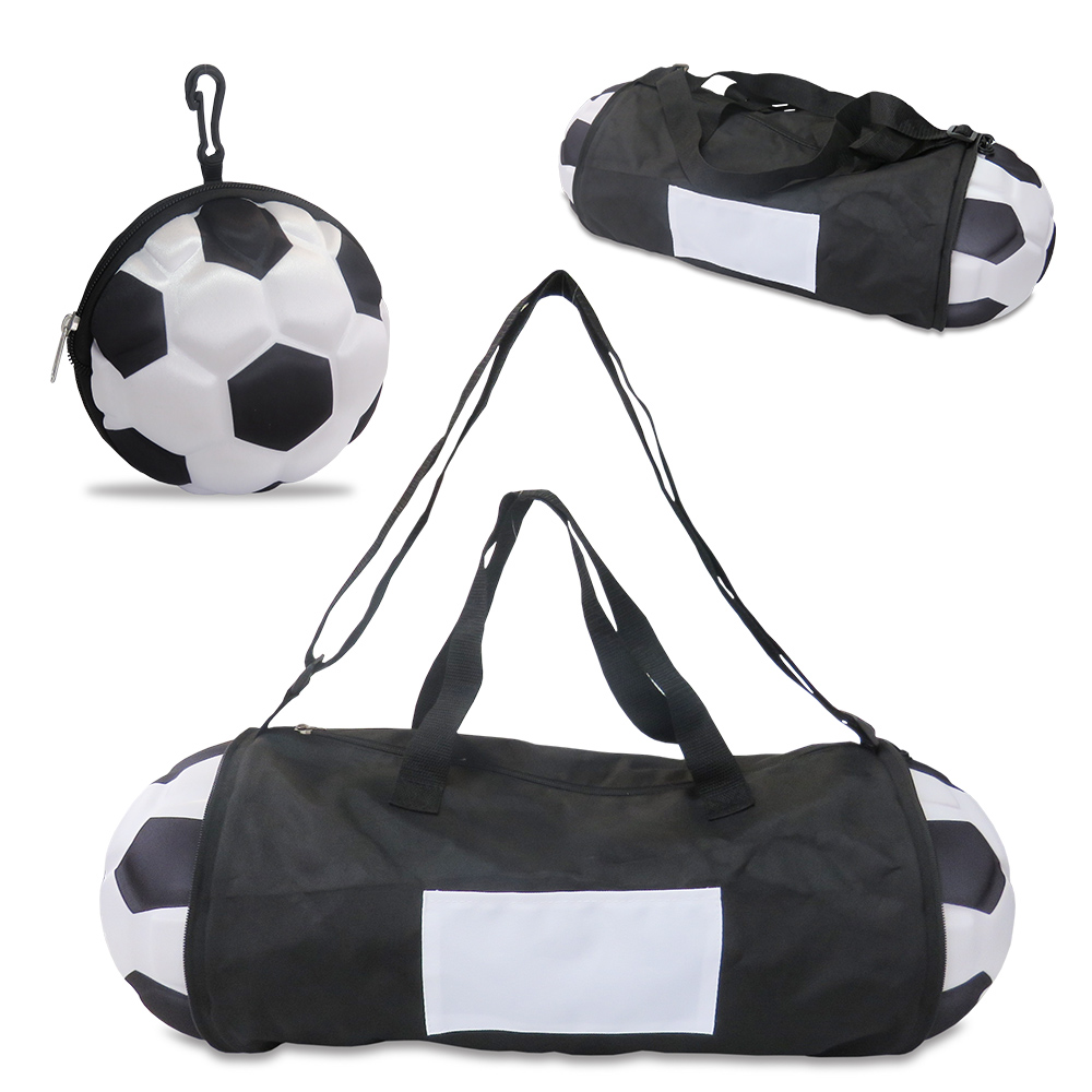 Maletín en poliéster, con bolsillo exterior, plegable forma de Balón en EVA, con correa para cargar.