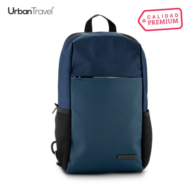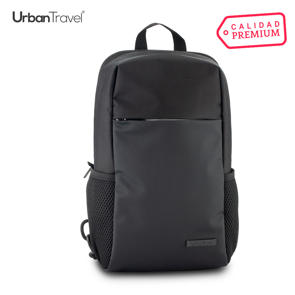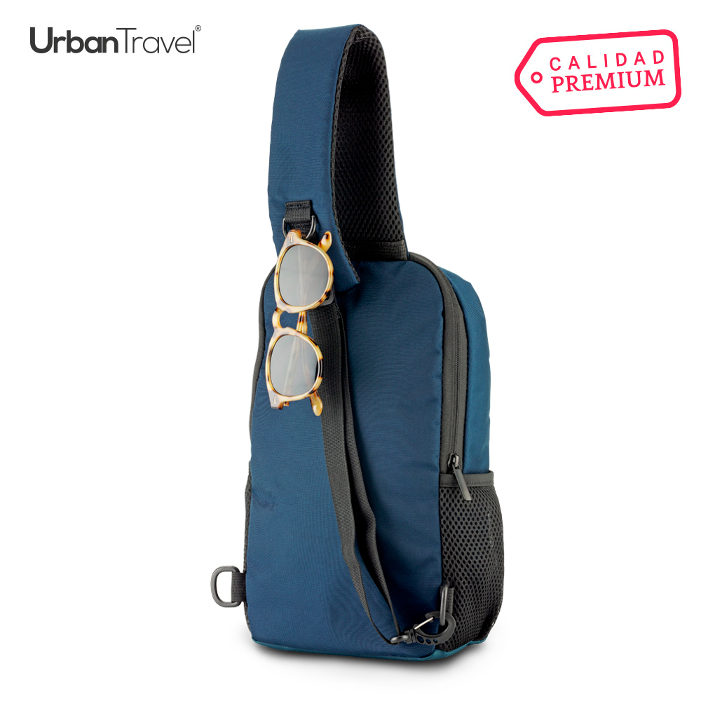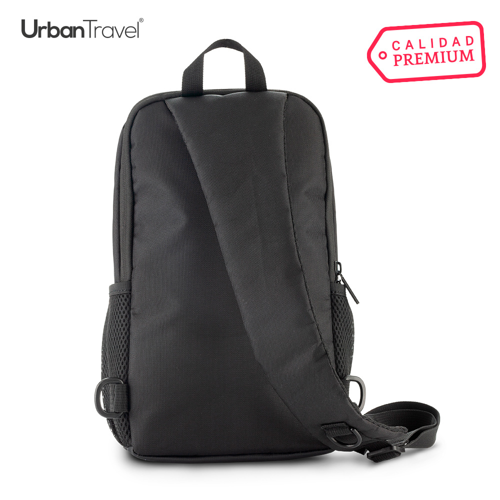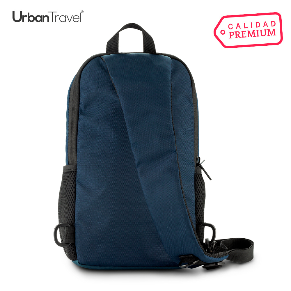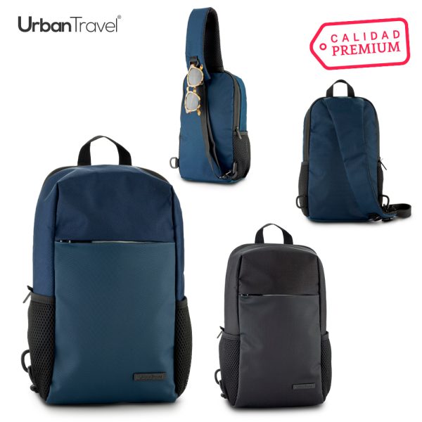 Bolso compacto manos libres en poliéster, con bolsillo exterior con cremallera y bolsillos laterales en malla.