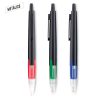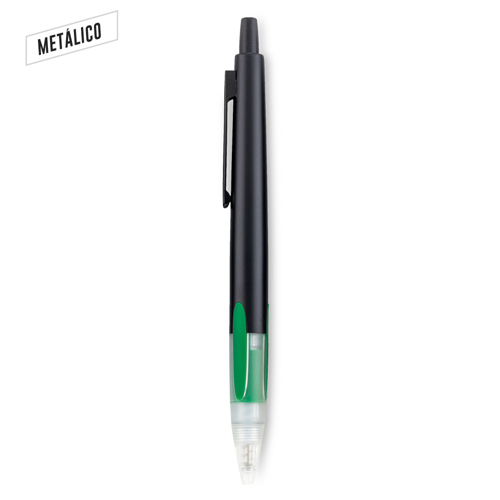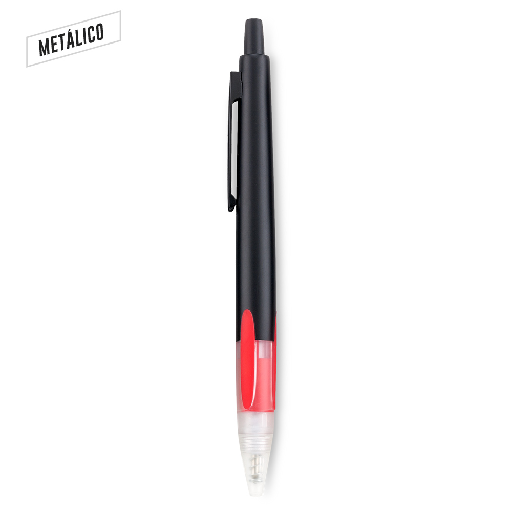 Bolígrafo metálico con accesorios plásticos.