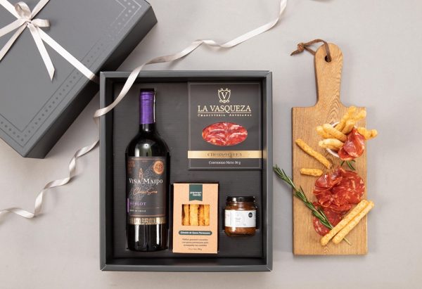 Botella de vino (750 ml), grissinis con queso parmesano
