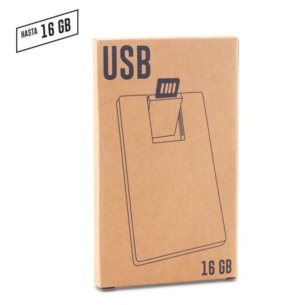 Memoria USB tarjeta de línea nature. 16GB de capacidad. De diseño plano, en bambú procedente de cortes naturales. Empaque caja individual.