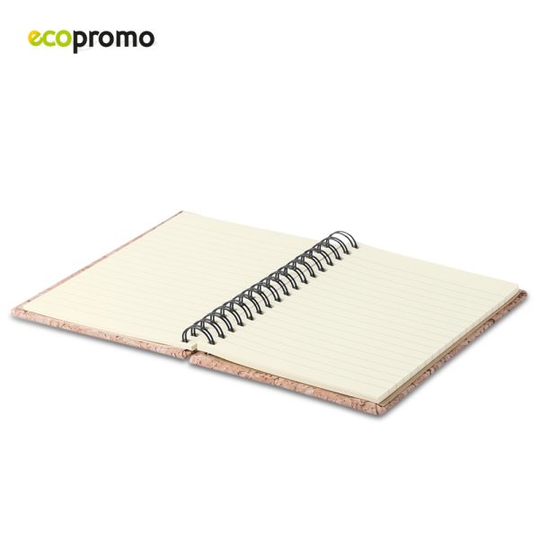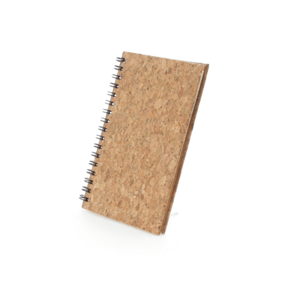 Cubierta tapa dura con corcho natural. 50 hojas papel crema con rayas.