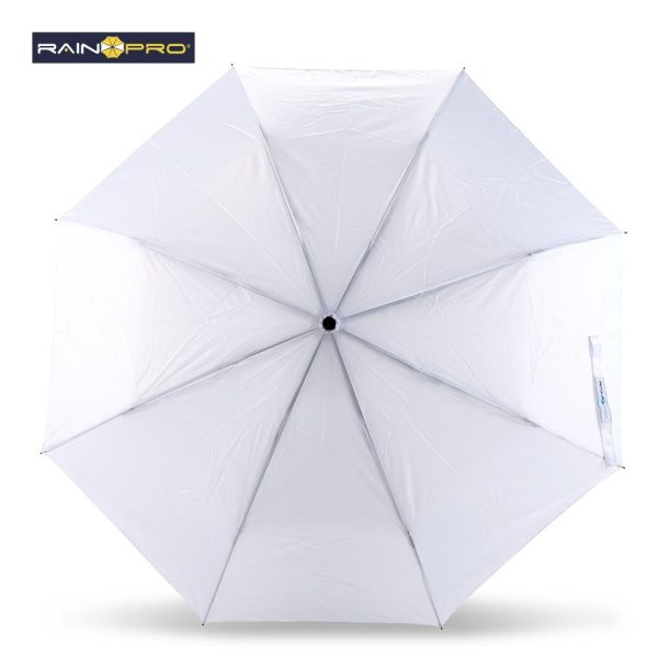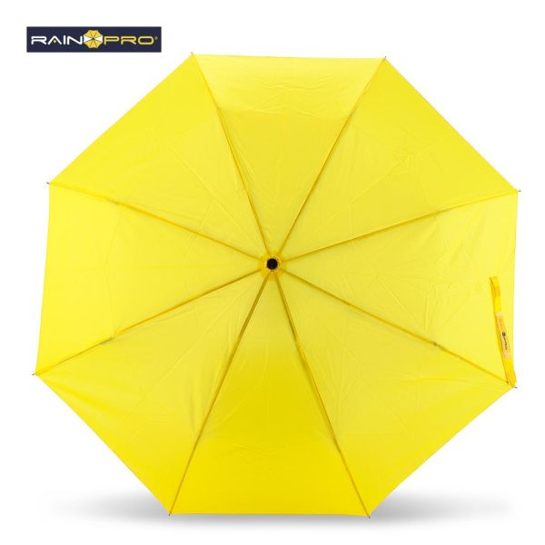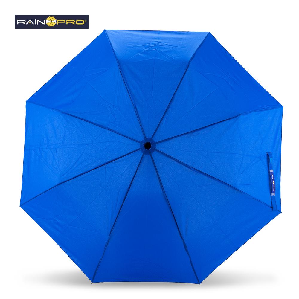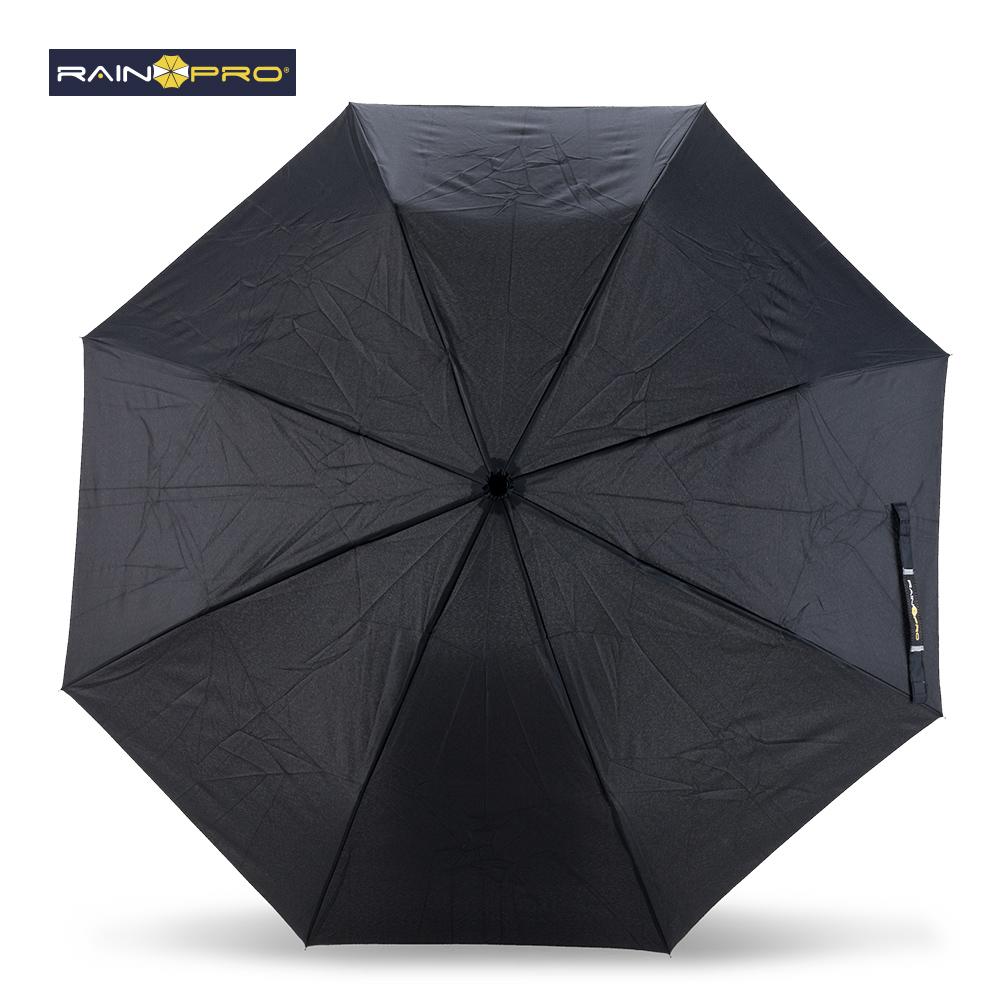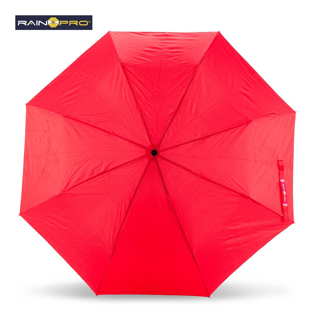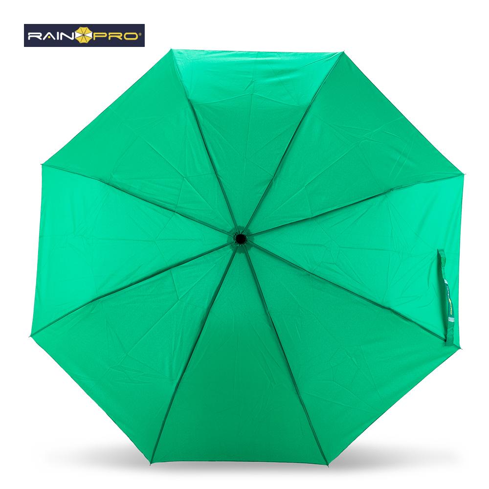En poliéster pongee 190T. Apertura manual, mango en caucho, herraje metálico. Con forro.