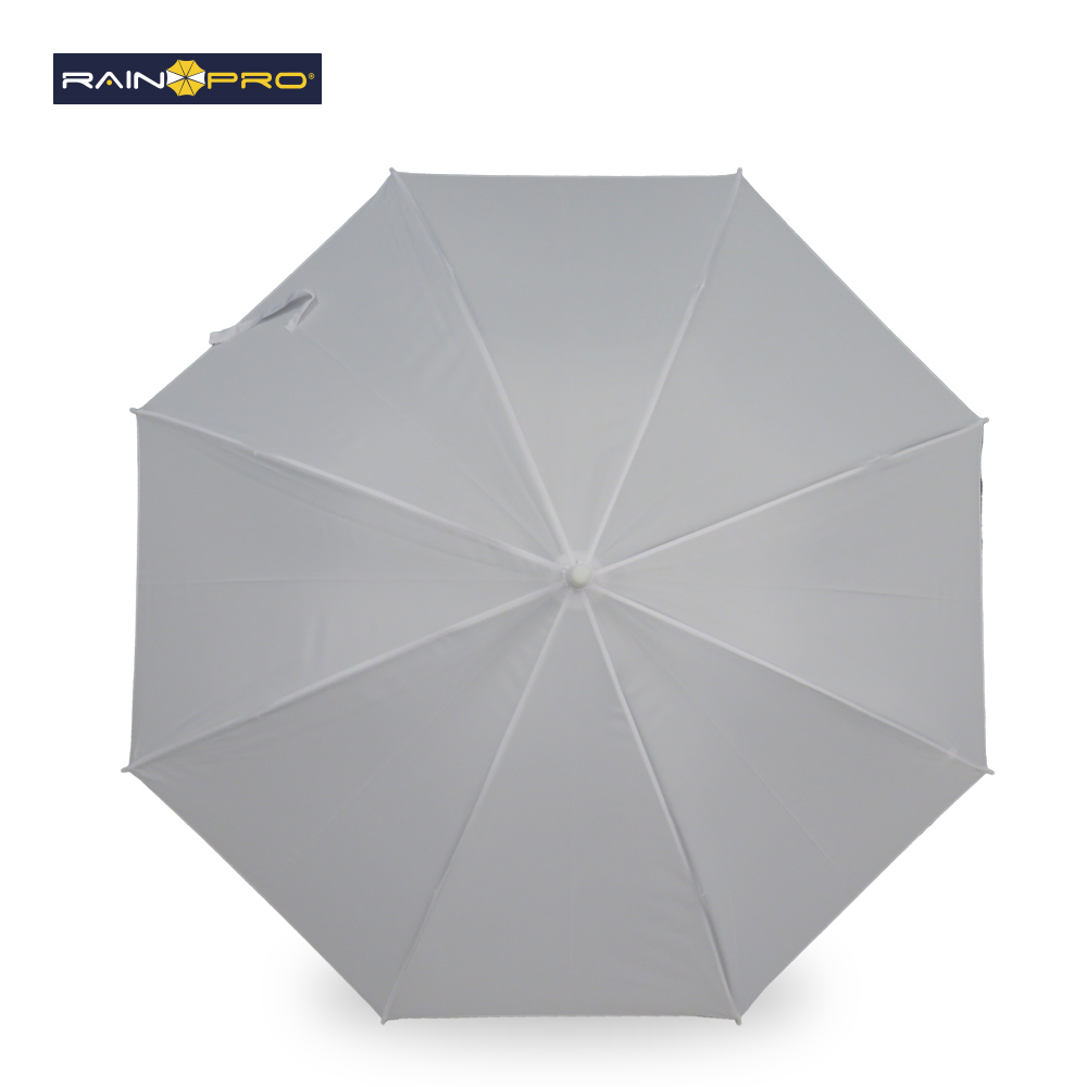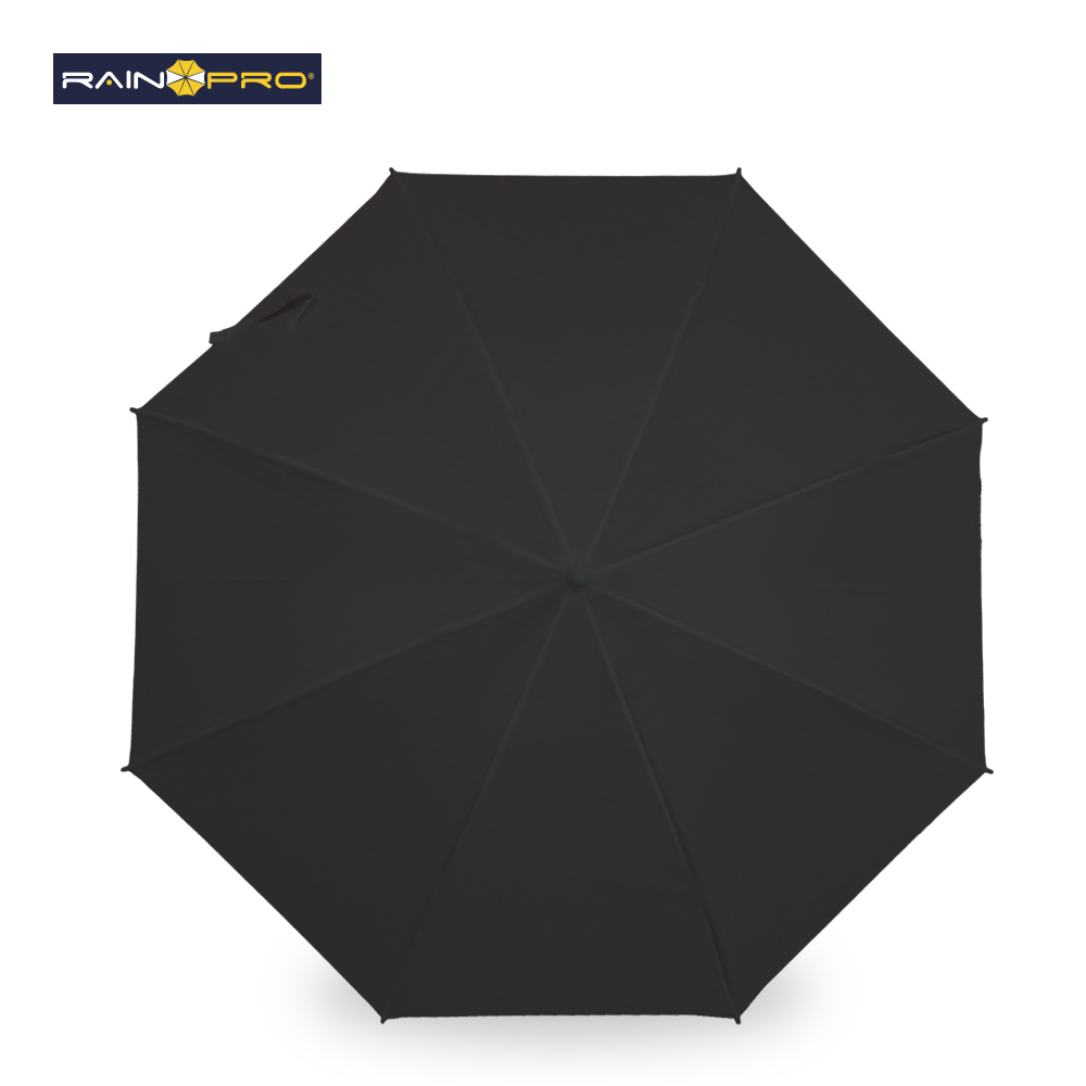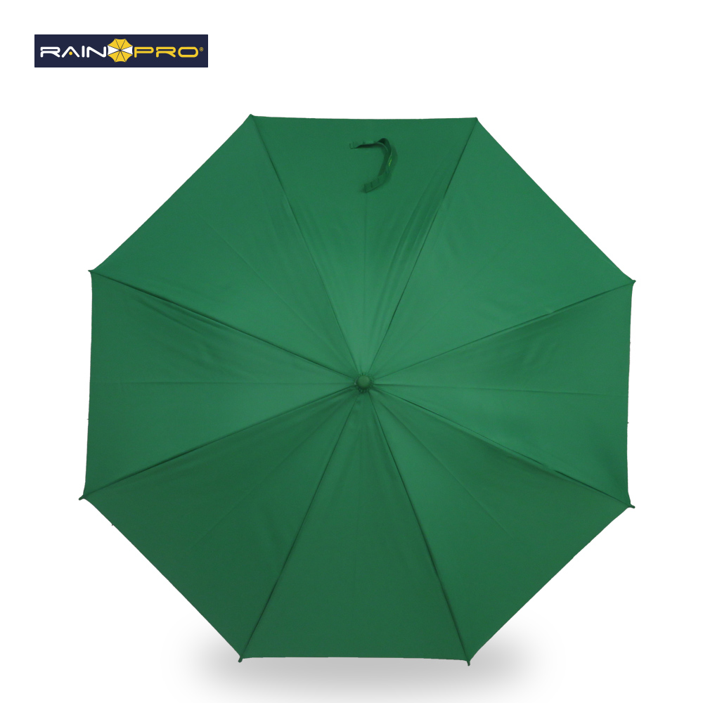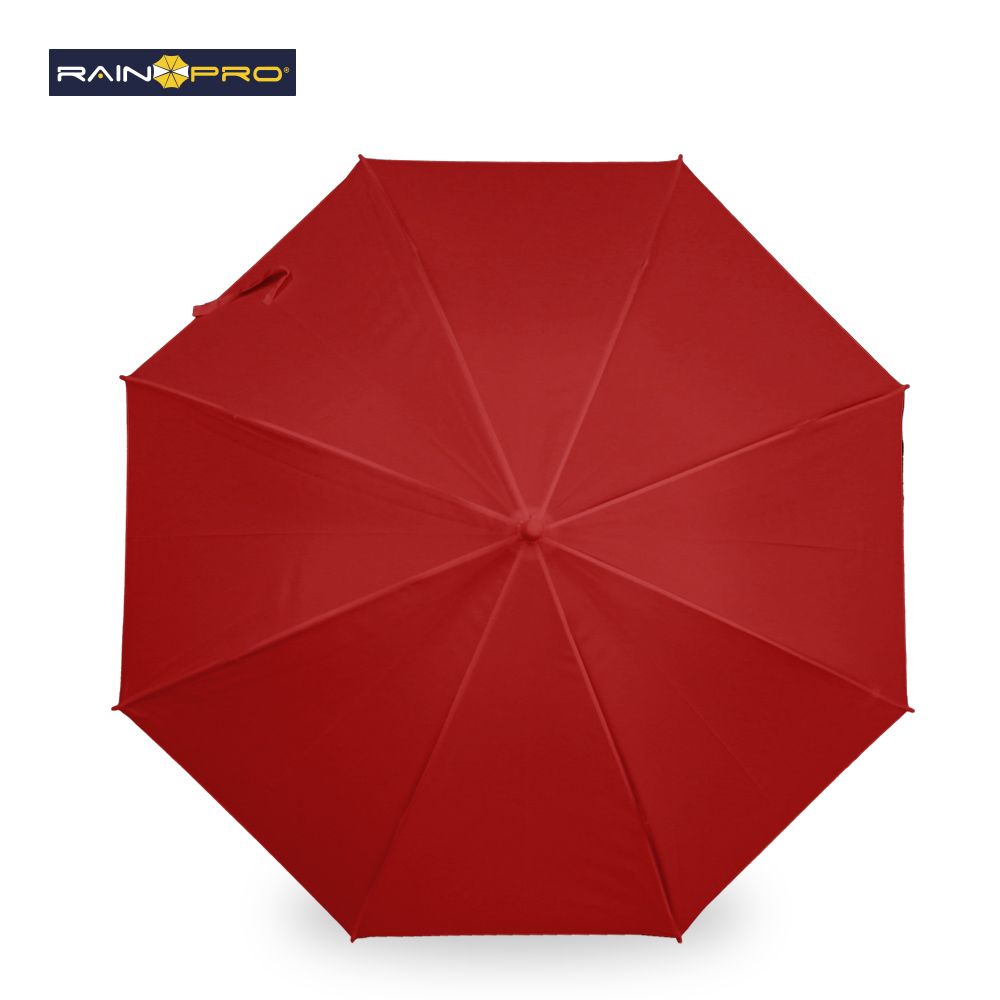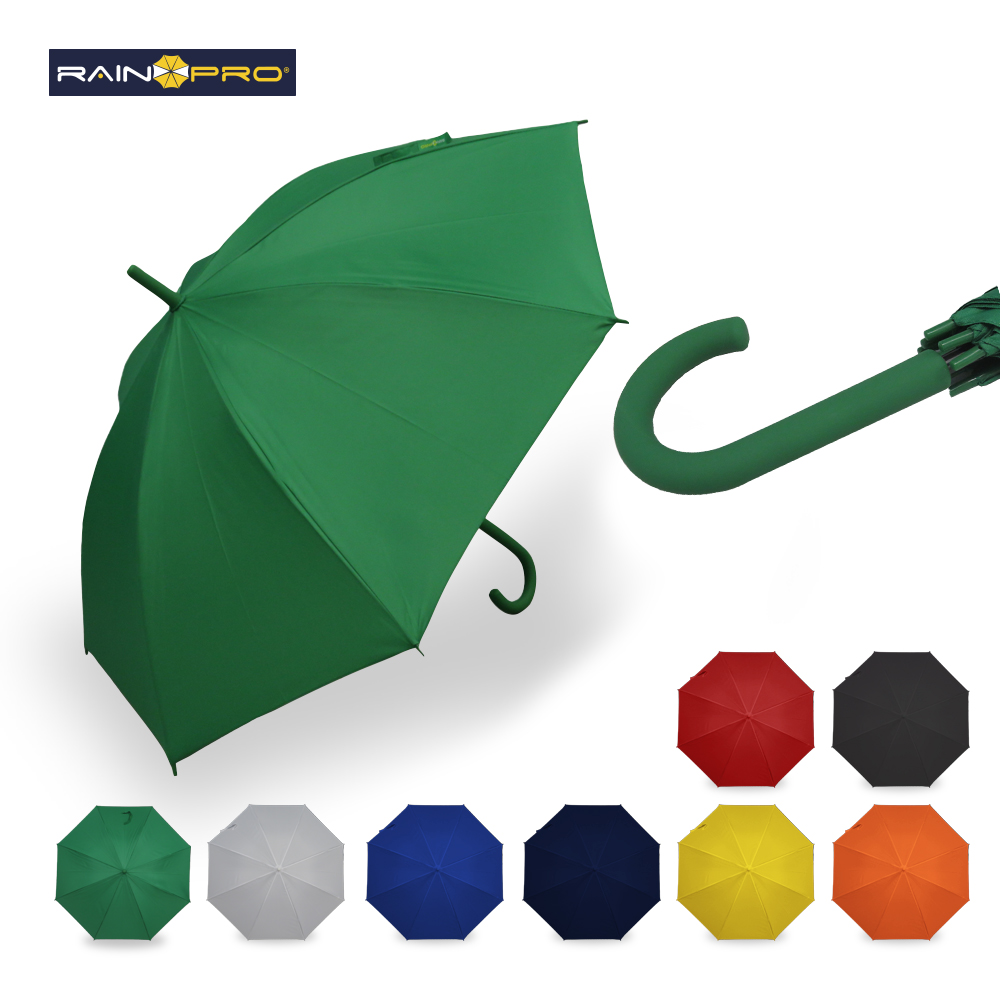 Poliéster pongee. Apertura automática, cierre manual. Marco metálico. Mango curvo plástico. 8 cascos.