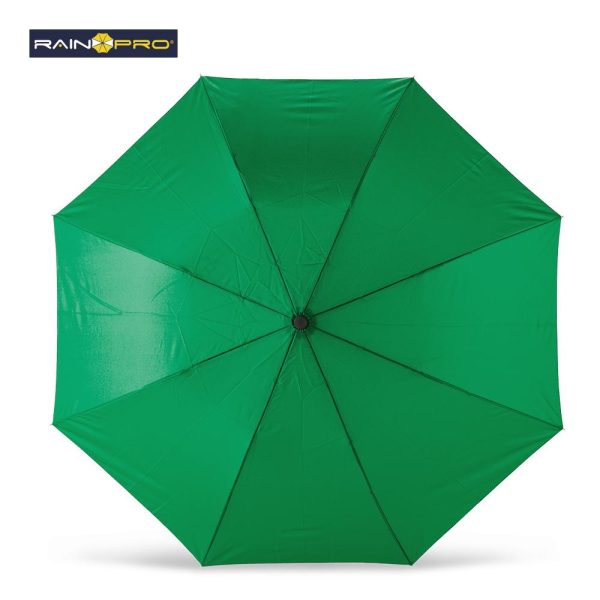Poliéster pongee 190T, plegable, mango con acabado en caucho y metal. Apertura semiautomático.
