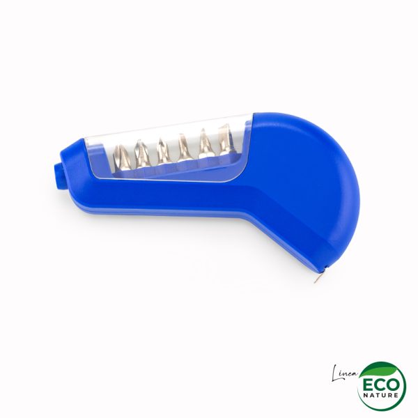 Mini set plástico de 6 piezas de destornilladores y metro de 1mt. Color natural en fibra de trigo. Empaque caja individual.