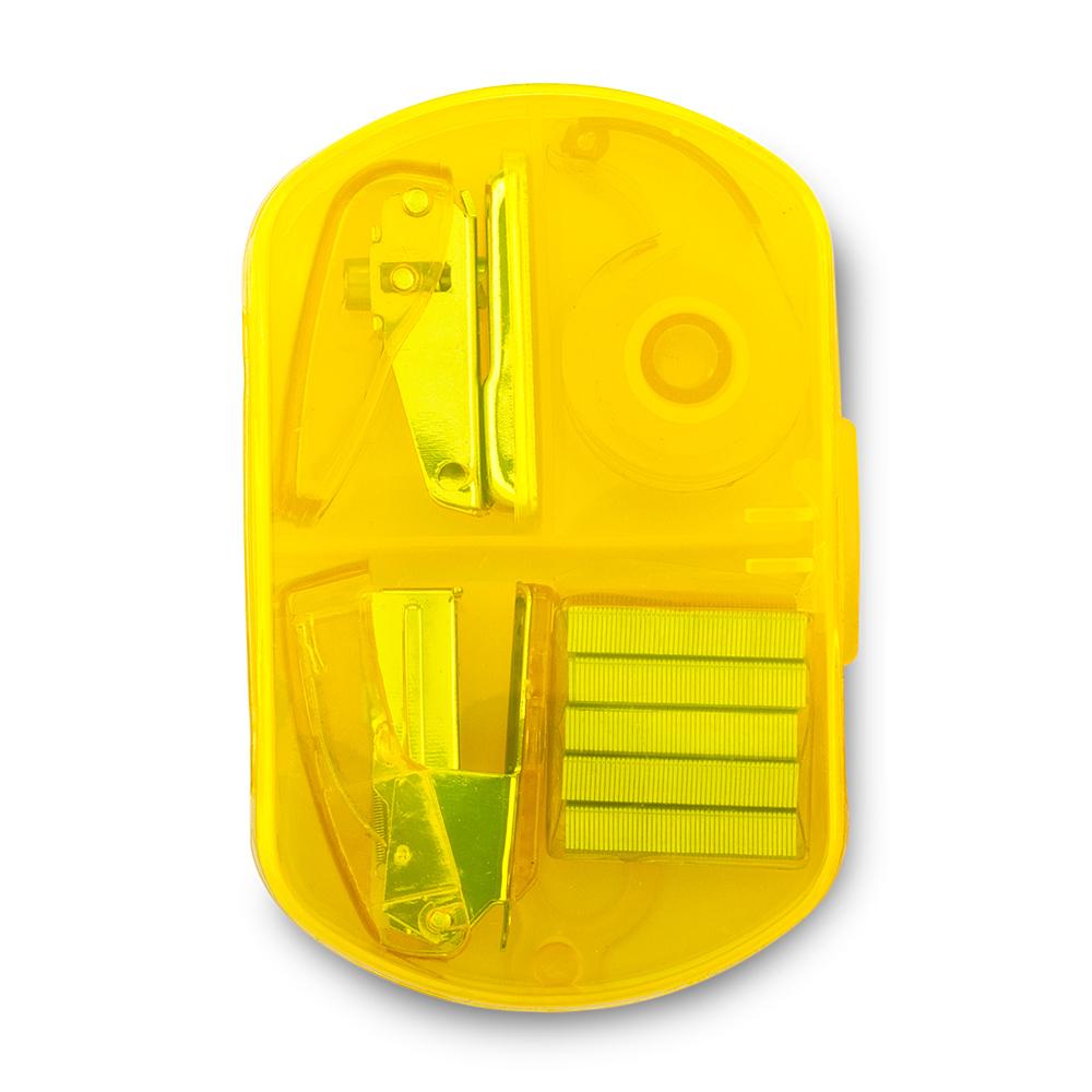 Incluye: Dispensador de cinta, cosedora, perforadora de un hueco y ganchos para cosedora.