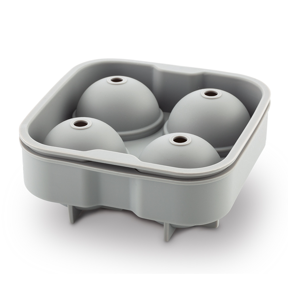 Silicona. Para cuatro hielos. Se coloca agua por el orificio con el molde cerrado. Se derriten más lento que un hielo convencional, manteniendo las bebidas frías por más tiempo y preservando el sabor de su bebida.