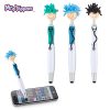 Bolígrafo plástico con stylus y cabeza con microfibra para limpiar pantallas.