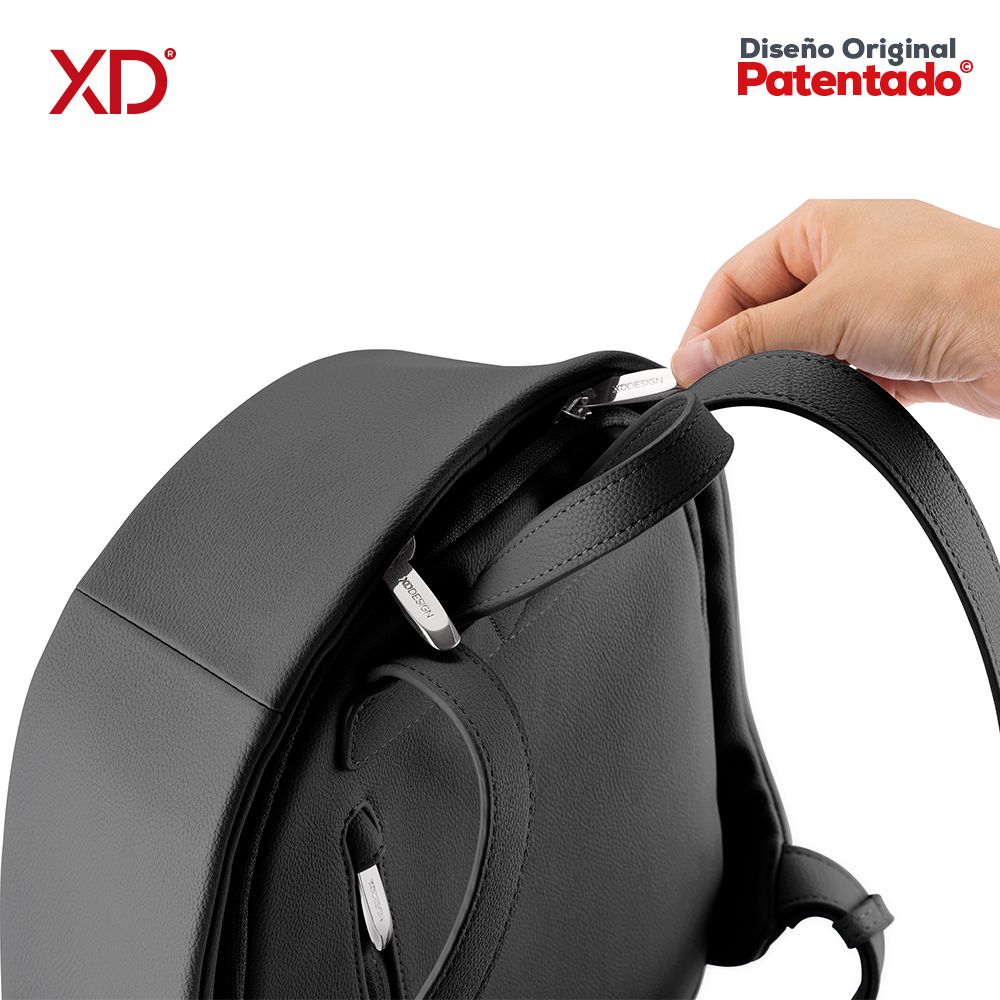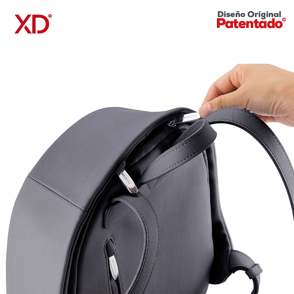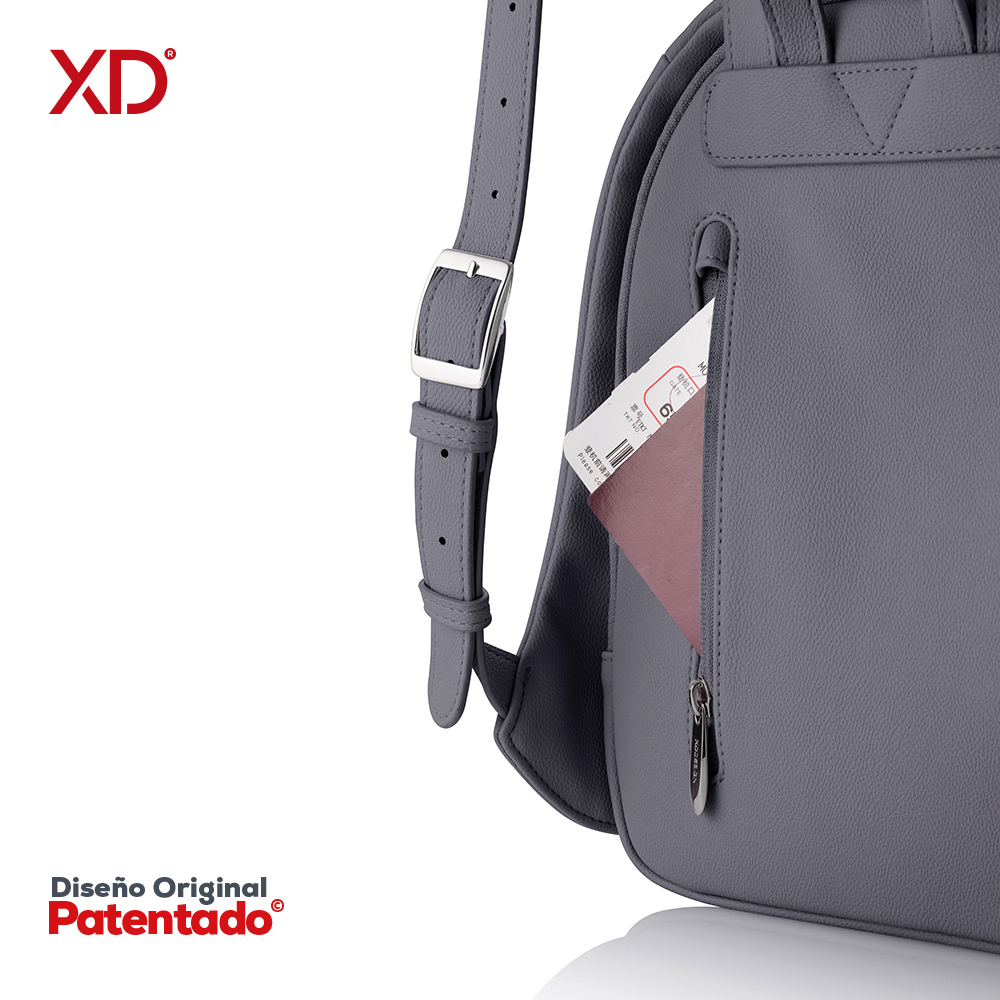 Bobby Elle además de ser un mini backpack con estilo, tiene las características de la colección Bobby Antirrobo. Elaborado en poliuretano de alta calidad, dispone de cremalleras y bolsillos escondidos, la parte frontal de la mochila tiene protección anticorte para prevenir que puedan acceder a los objetos del interior. También incluye bandas reflectantes para la noche. Repelente al agua, prácticos bolsillos interiores y caucho interior porta botella, soporta dispositivos inteligentes de hasta 9,7 pulgadas. Diseño registrado®. Empaque Caja Individual.