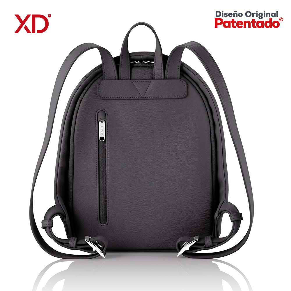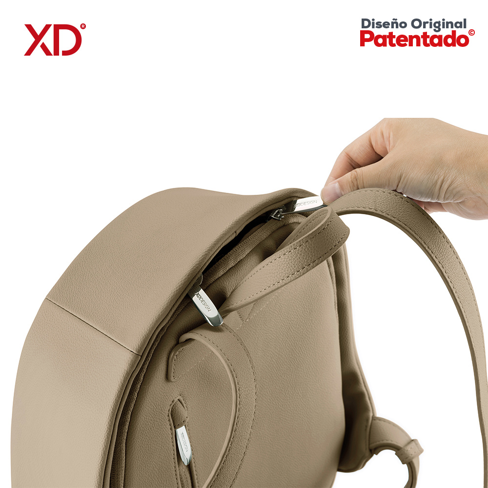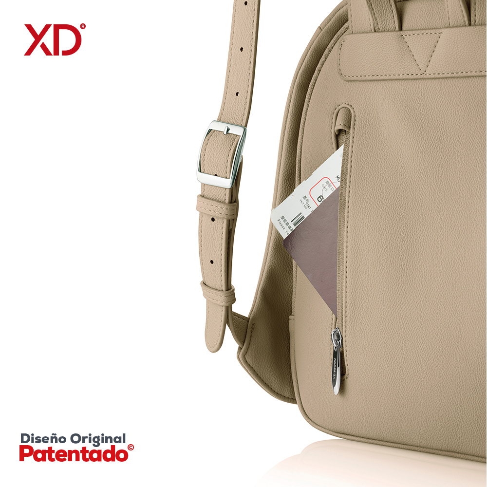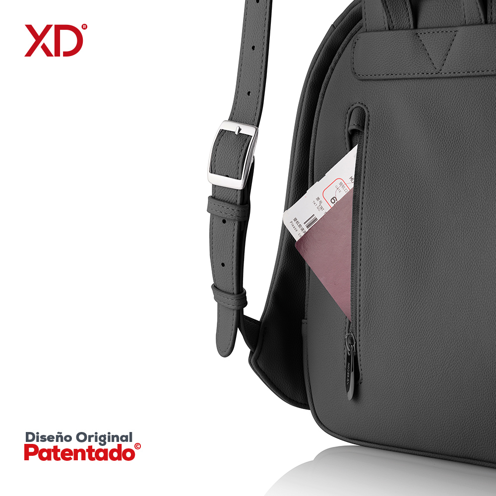 Bobby Elle además de ser un mini backpack con estilo, tiene las características de la colección Bobby Antirrobo. Elaborado en poliuretano de alta calidad, dispone de cremalleras y bolsillos escondidos, la parte frontal de la mochila tiene protección anticorte para prevenir que puedan acceder a los objetos del interior. También incluye bandas reflectantes para la noche. Repelente al agua, prácticos bolsillos interiores y caucho interior porta botella, soporta dispositivos inteligentes de hasta 9,7 pulgadas. Diseño registrado®. Empaque Caja Individual.