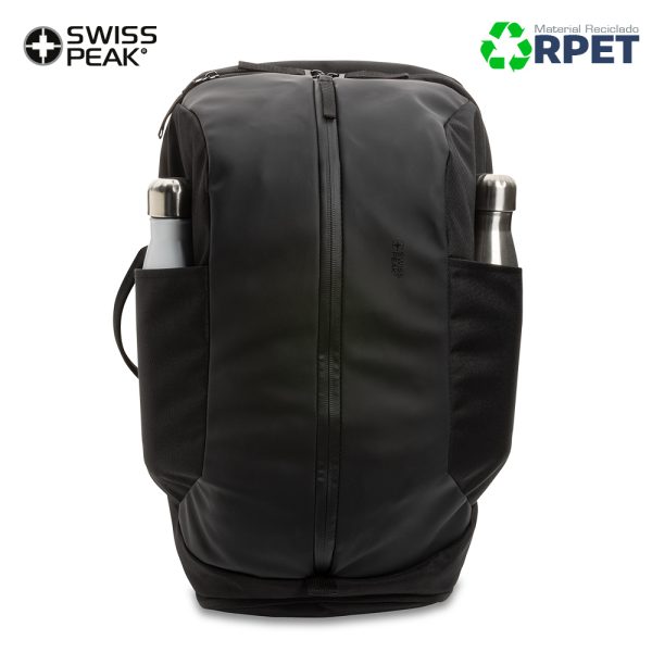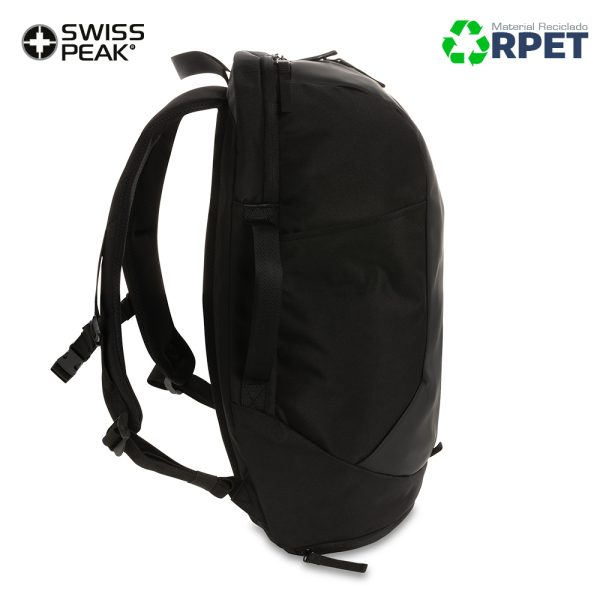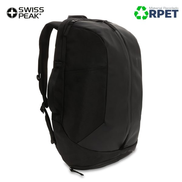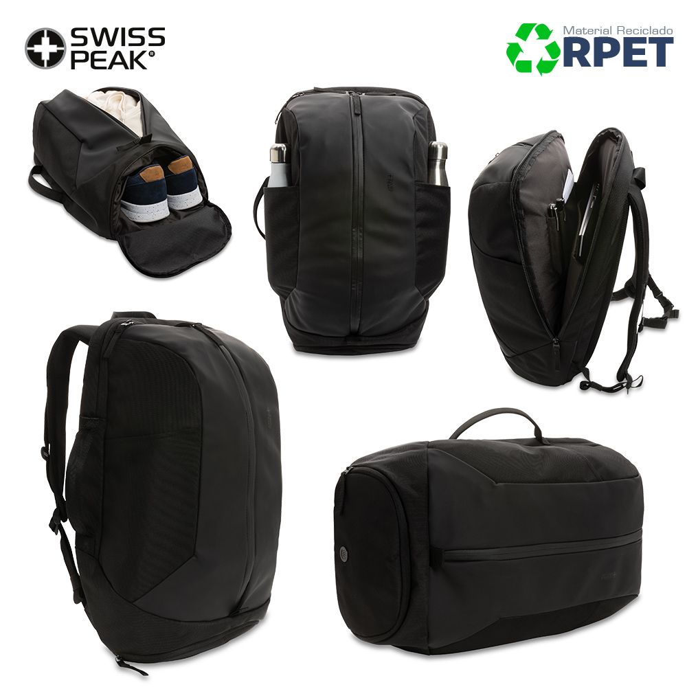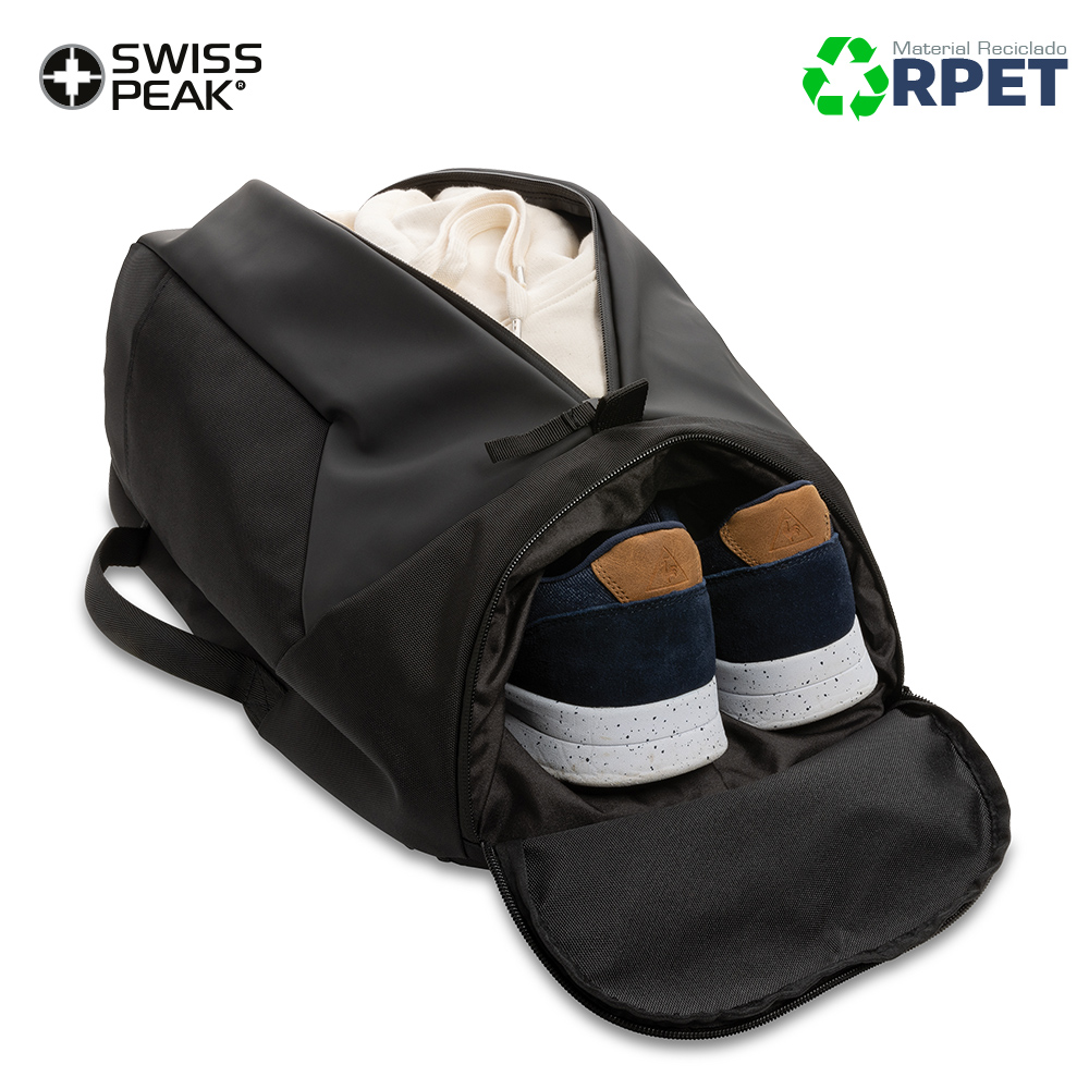 Morral híbrido (trabajo/gym elaborado en poliéster RPET y poliuretano reciclado. Para portátiles de hasta 15.6”. Con tres bolsillos exteriores y bolsillo guarda zapatos. Correas para los hombros transpirables. Espaldar acolchado y correas para el pecho ajustables. Exterior fabricado con poliuretano y poliéster reciclado 1200D. El forro 150D confeccionado con poliéster reciclado 100%. Libre de PVC.