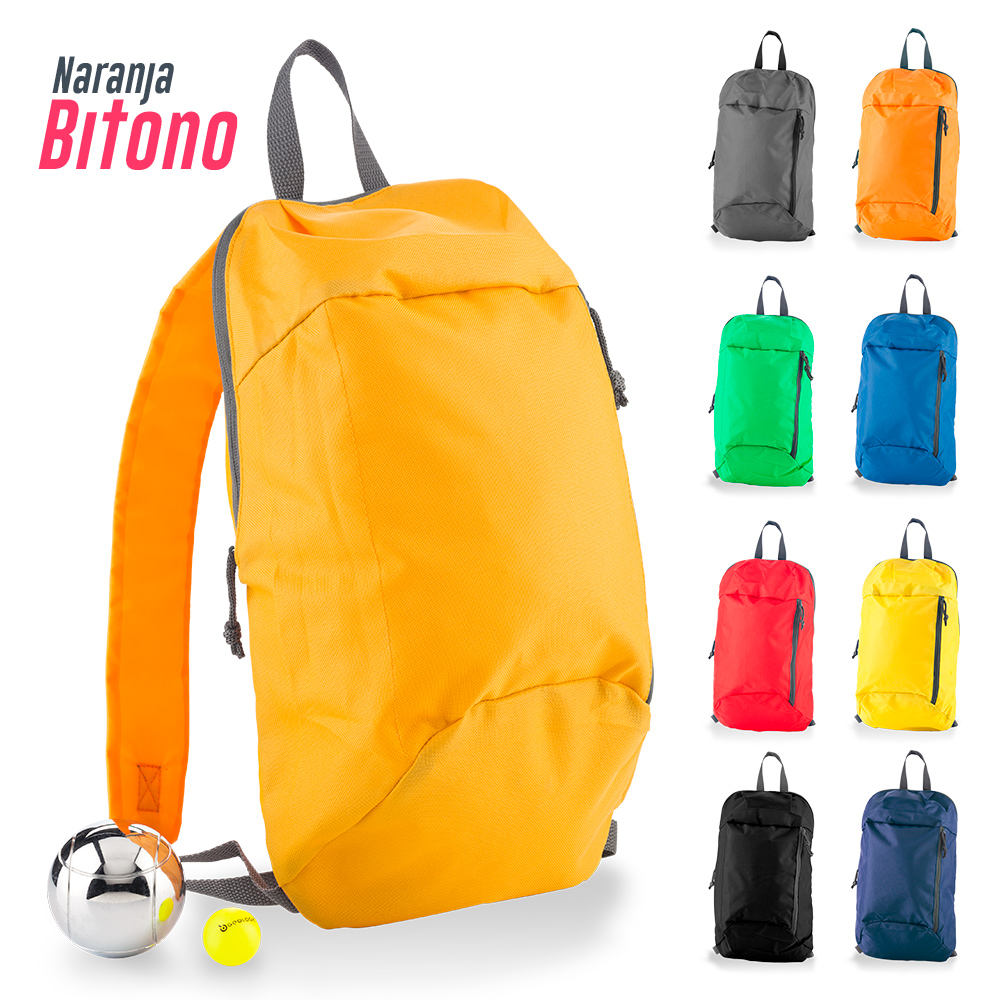 Morral en poliéster 600D, un bolsillo externo con cremallera.