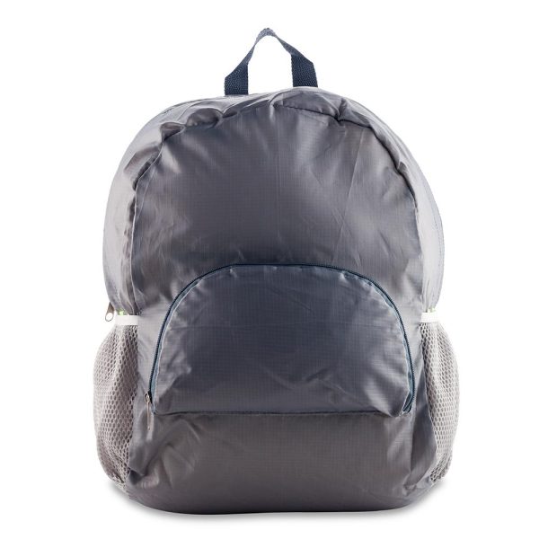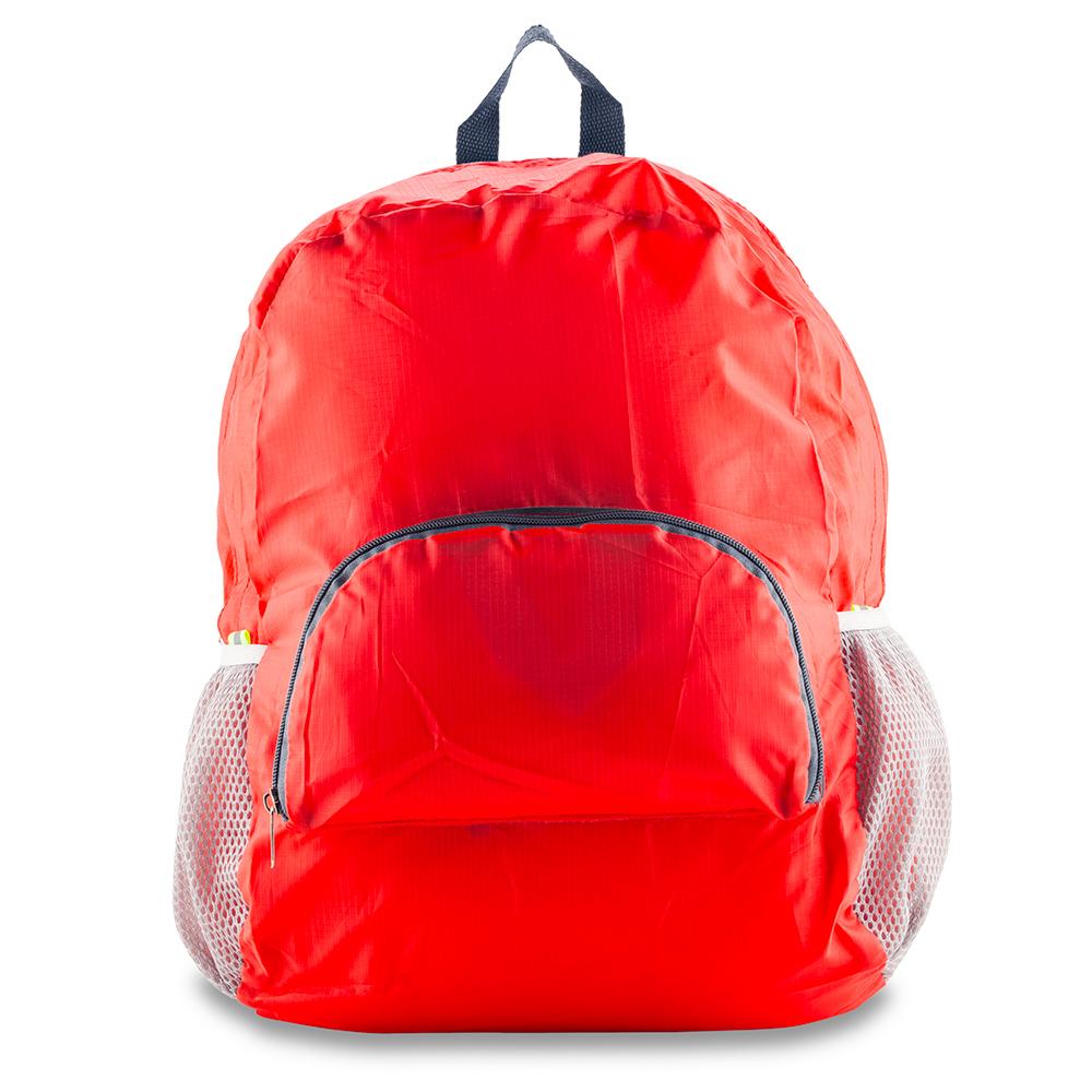 Morral backpack plegable en poliéster con dos bolsillos de malla.