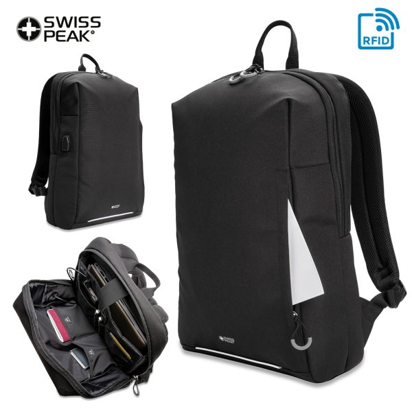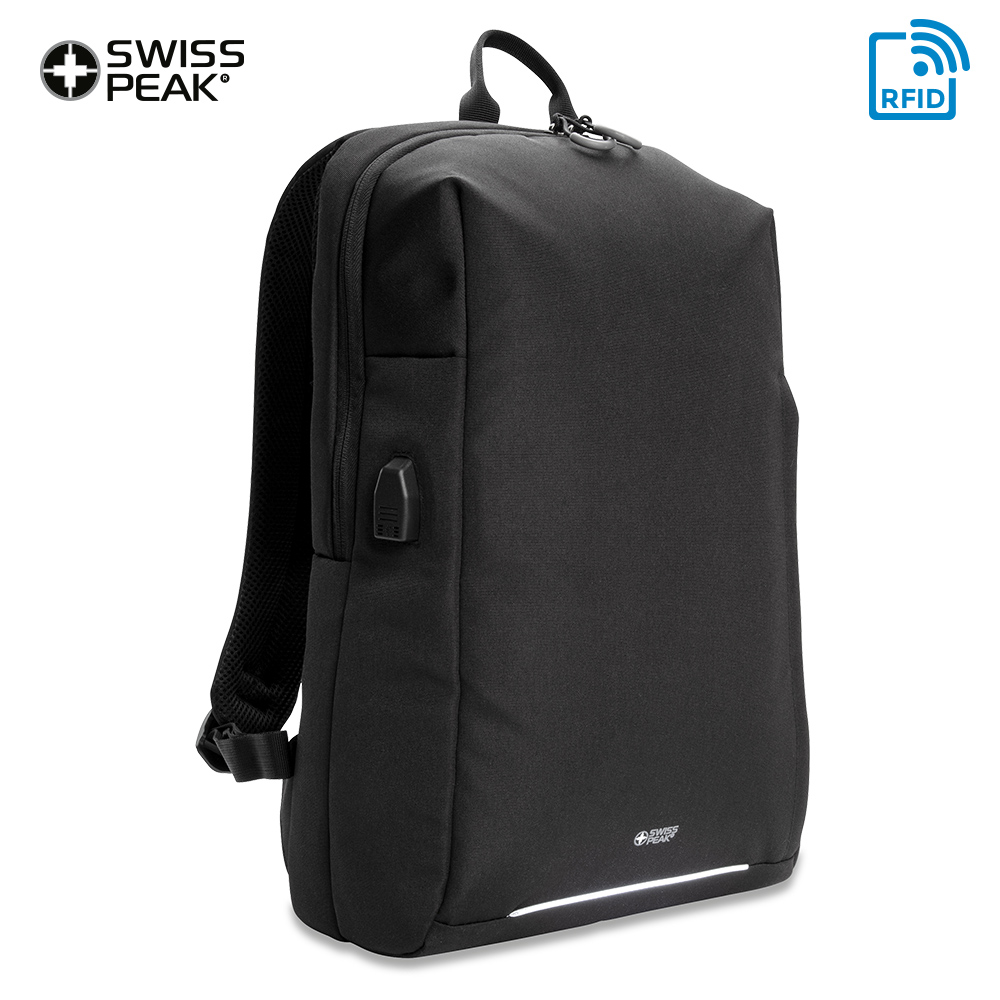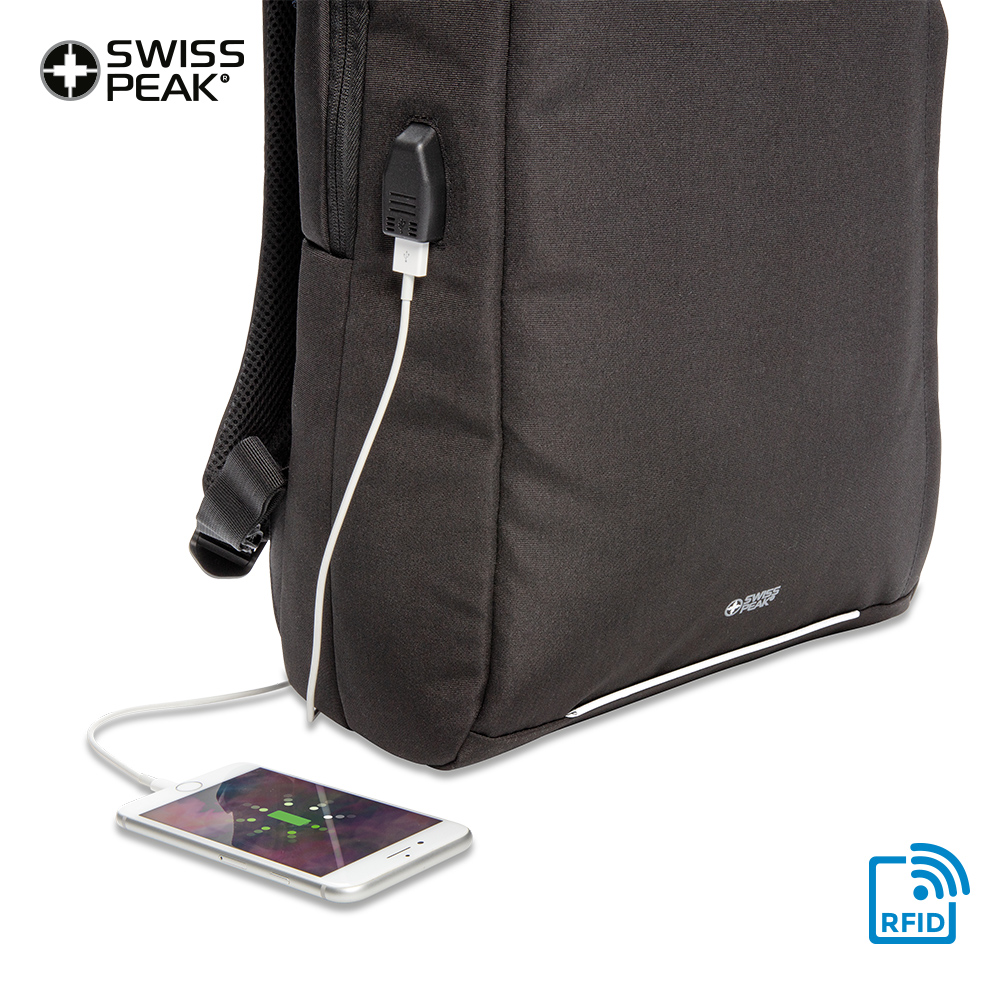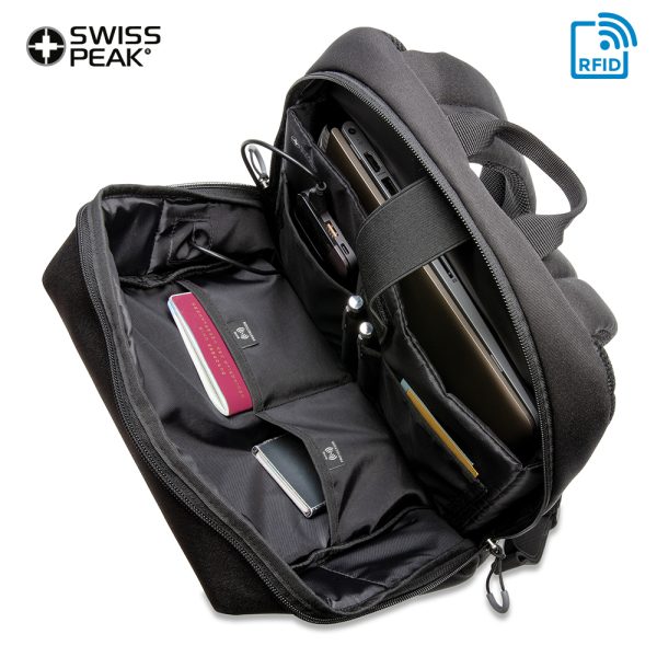 Morral en poliéster (Libre de PVC), un compartimento acolchado para ordenador portátil de 15.6″. Incluye correa para sujetarla a trolley. Cable USB para conectar pila desde el interior (pila no incluida). Bolsillo lateral de acceso rápido con protección RFID. Frontal con tira de seguridad reflectiva.