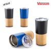 Vaso doble pared en acero inoxidable, partes en bambú. Tapa de cierre a presión, no es tapa de seguridad. Empaque caja individual.