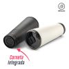 Mug metálico con interior plástico. La tapa es una tapa protectora de cierre a presión, no es de seguridad la cual funciona también como corneta.