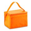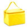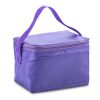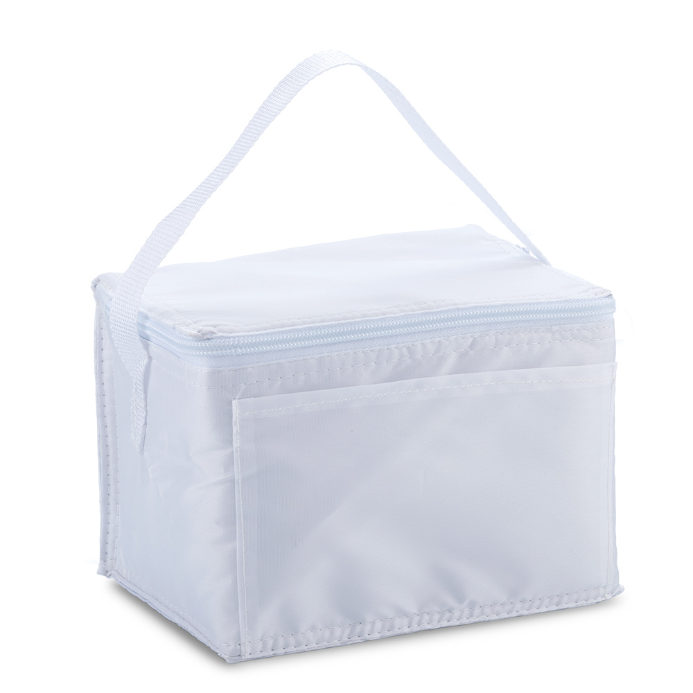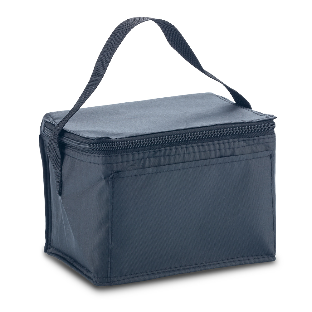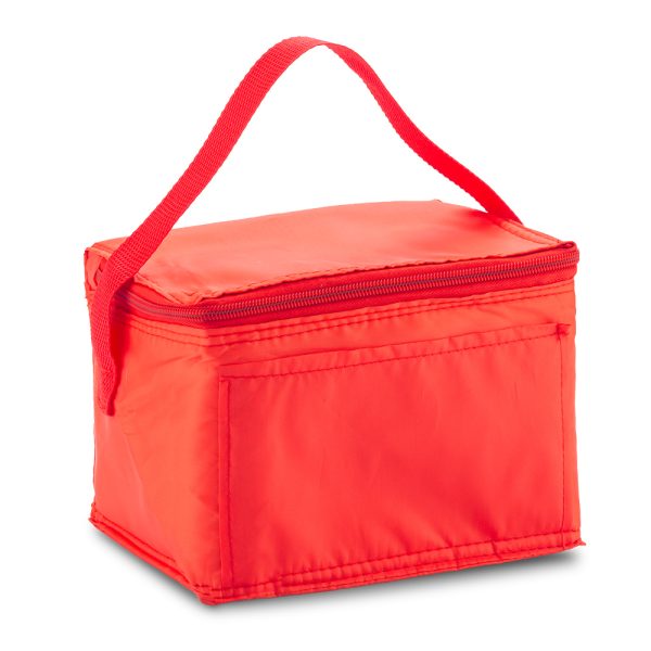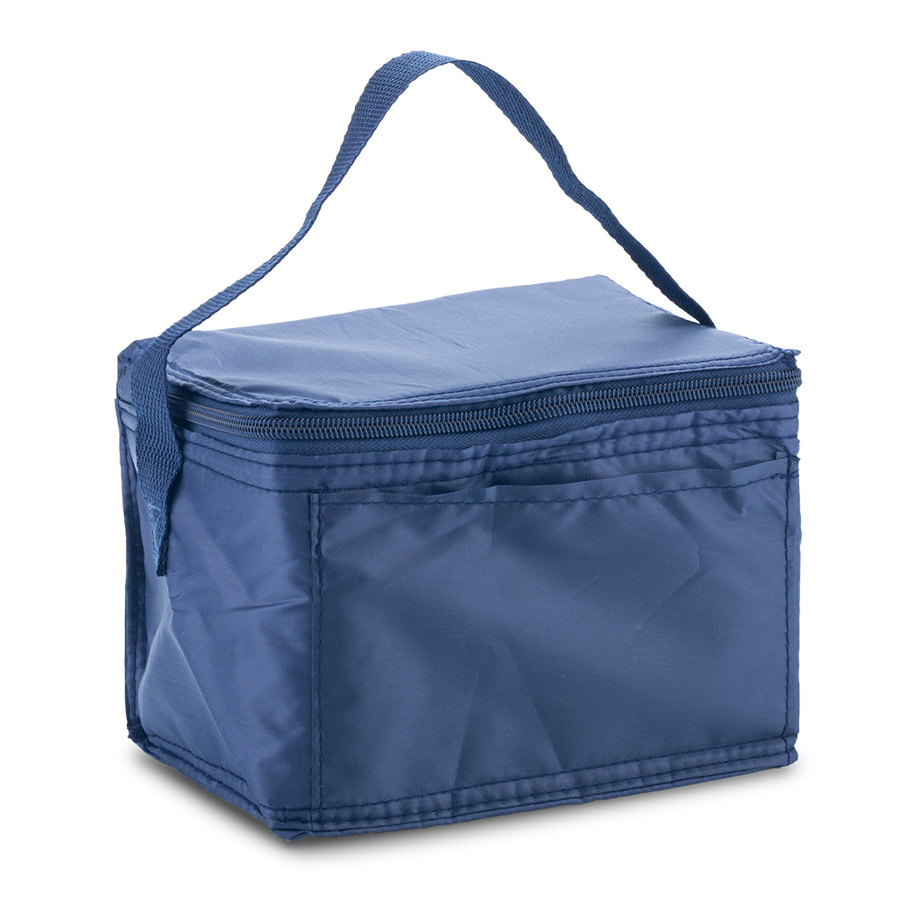 En poliéster 210D, con interior en aluminio y bolsillo exterior.