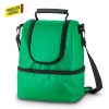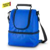 Nevera en poliester, con bolsillo frontal. Su recubrimiento interior conserva las bebidas o