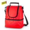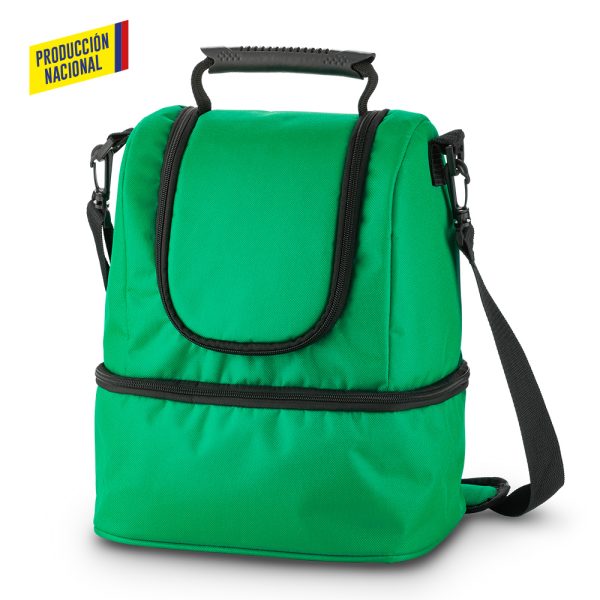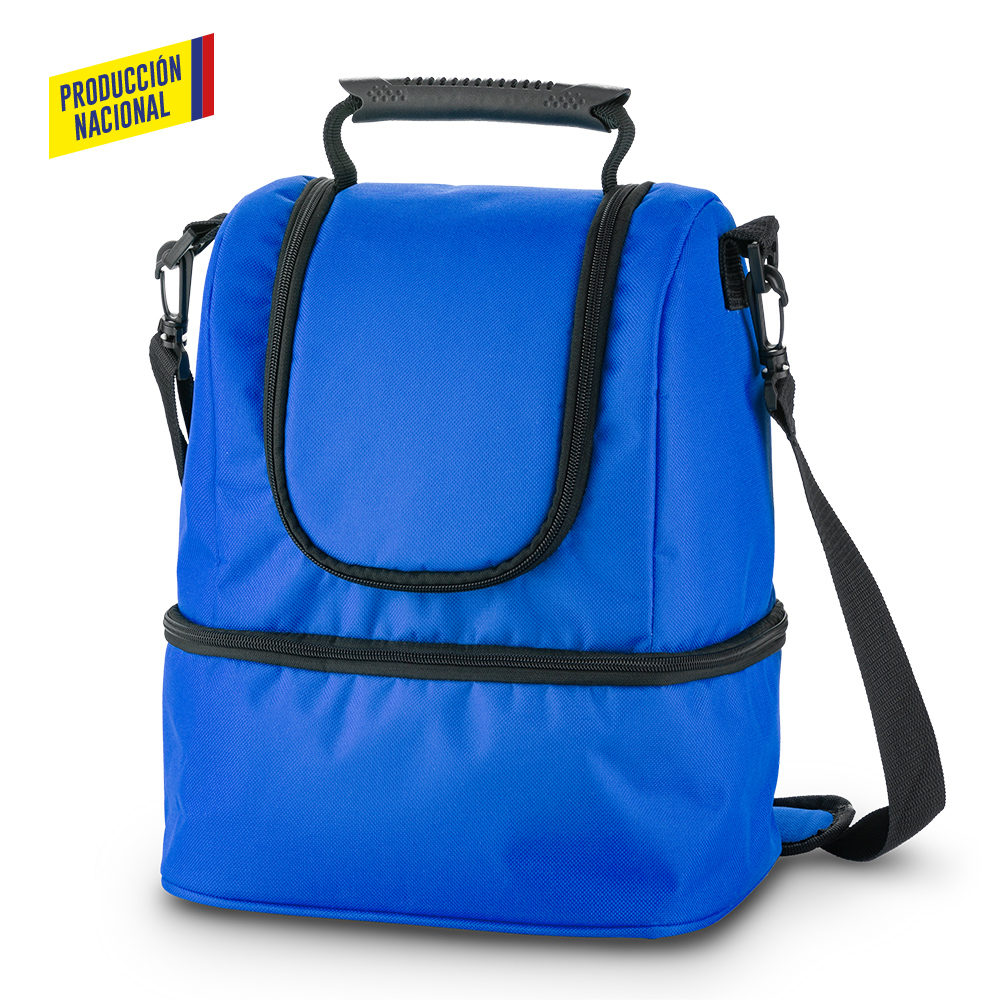 alimentos fríos por más tiempo. Con malla interna que provee diferentes compartimentos y bolsillo lateral en malla. Correa ajustable y removible para cargar.
