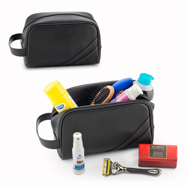 Organizador en poliuretano con agarradera lateral. Un bolsillo interno con cremallera.