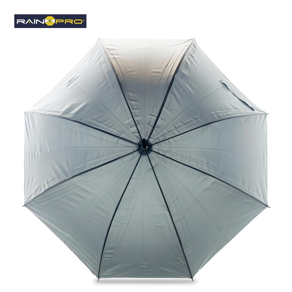 Poliéster pongee 190T. Mango ergonómico en caucho y herraje metálico. Semiautomático. 8 Cascos.