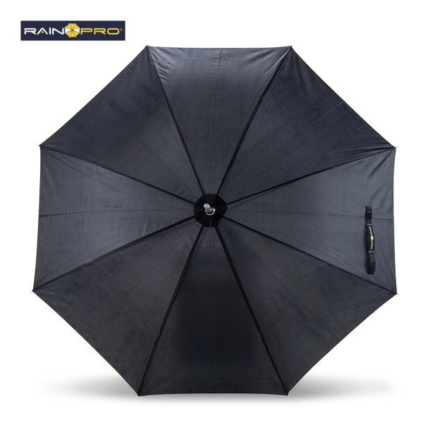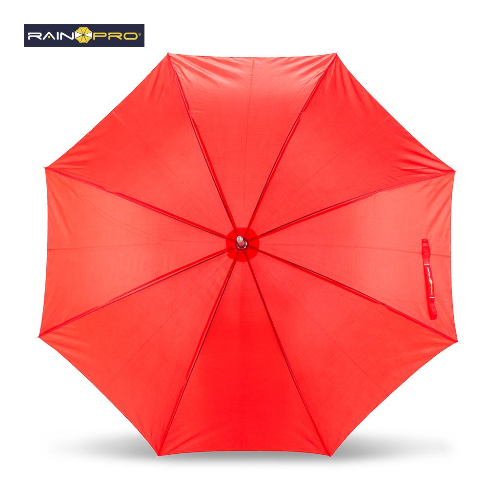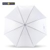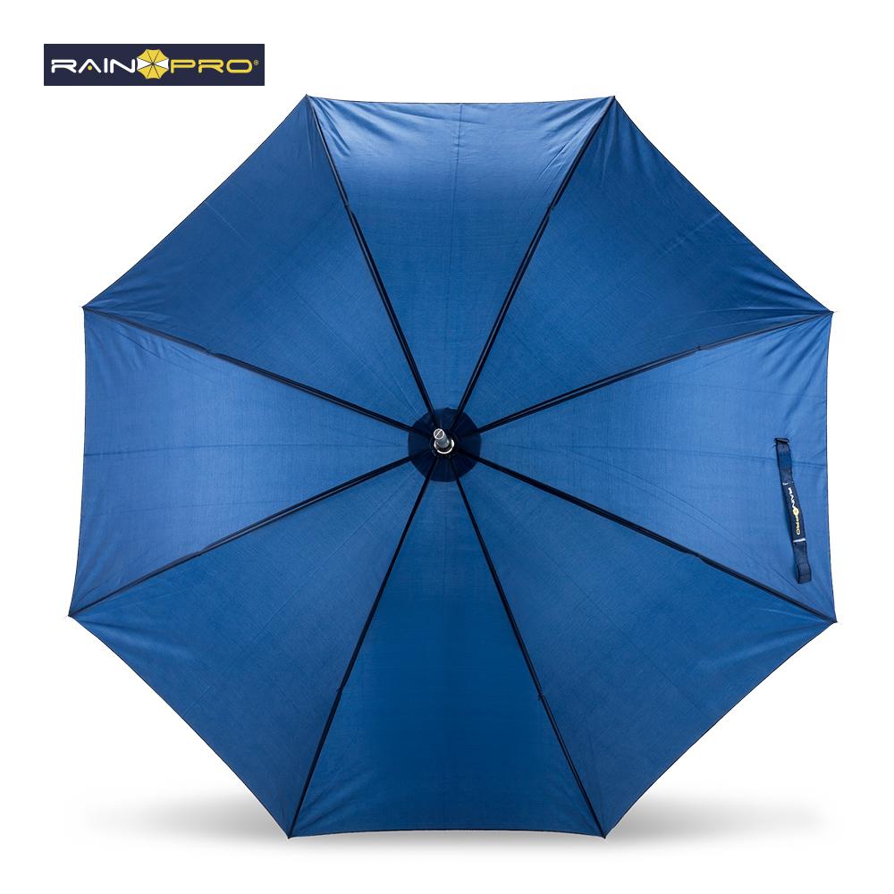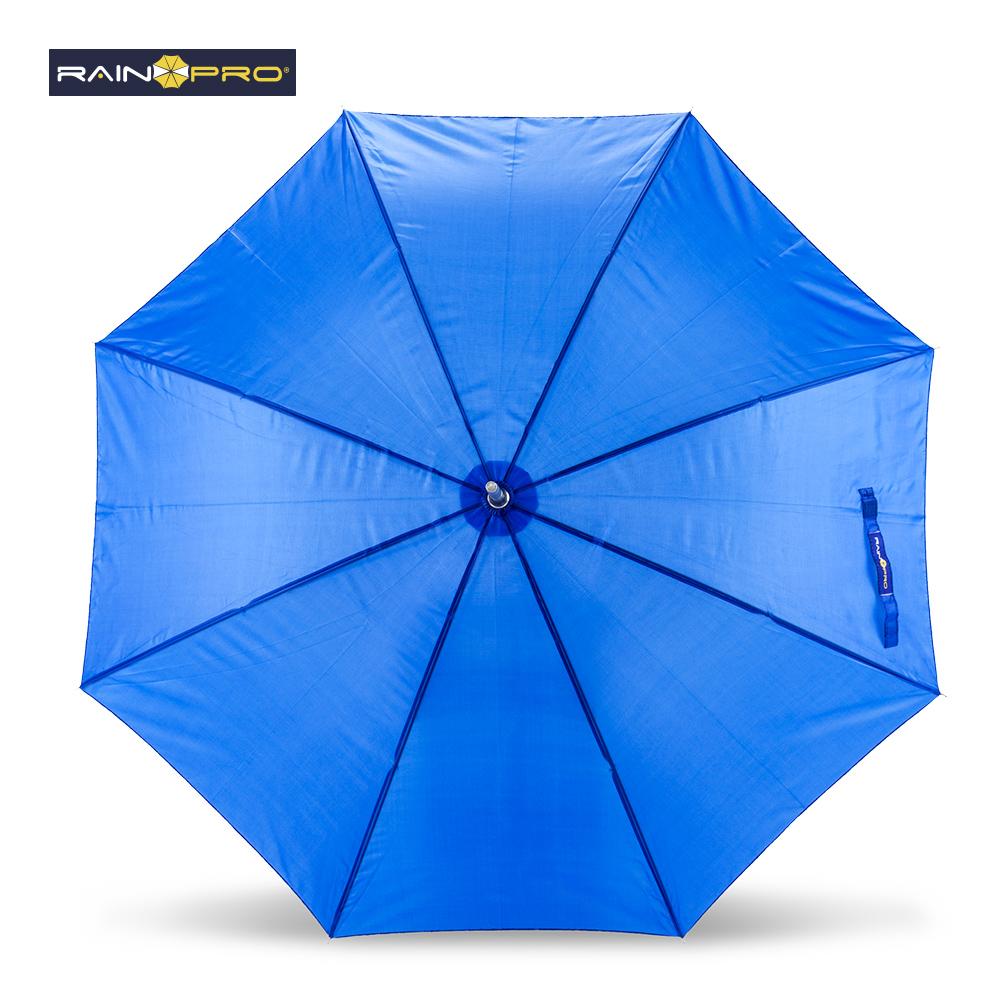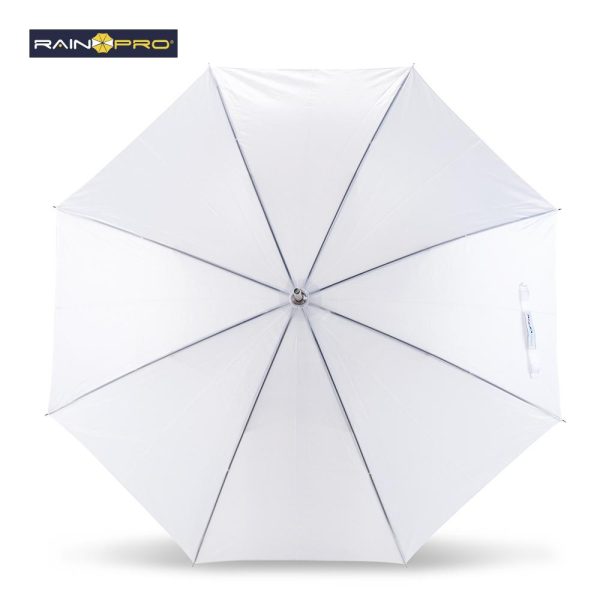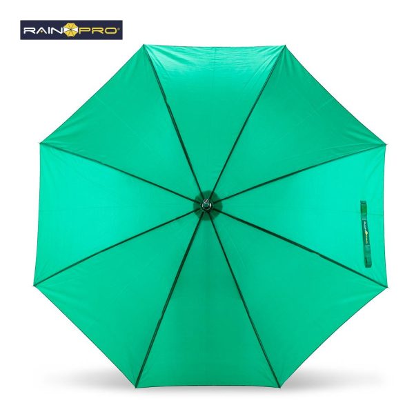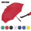 Poliéster pongee 190T. Apertura automática, con estructura metálica y de fibra de vidrio reforzado. Mango de lujo en caucho.