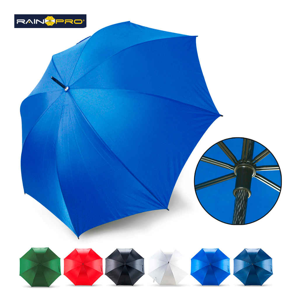 Poliéster pongee 190T. Mango en espuma y doble herraje metálico con fibra de vidrio.