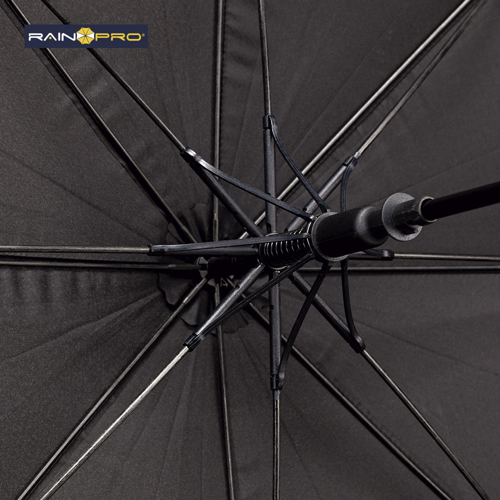 Poliéster pongee 190T. Mango curvo en caucho y herraje en fibra de vidrio. Semiautomático.