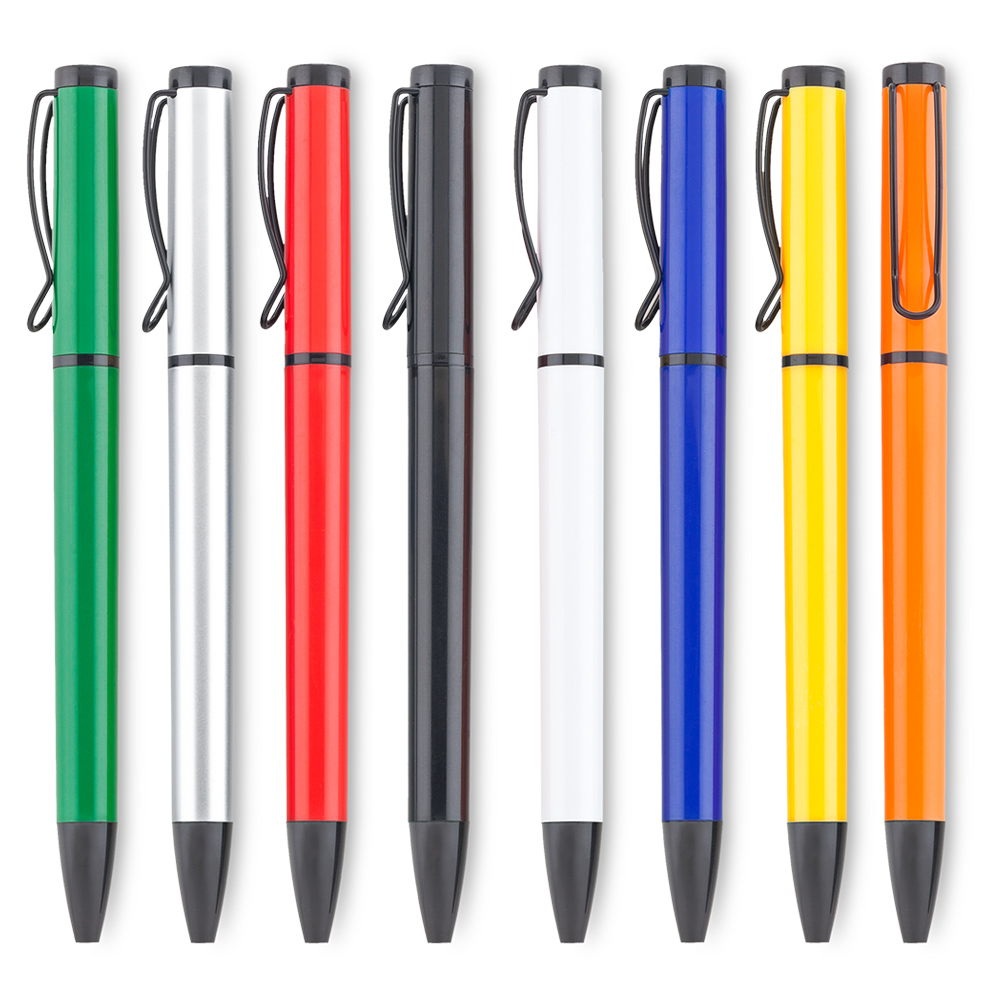 Bolígrafo plástico. Clip metálico.