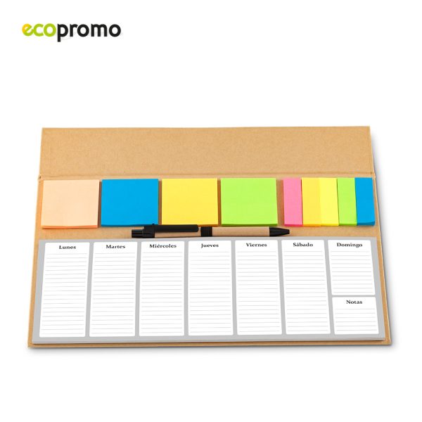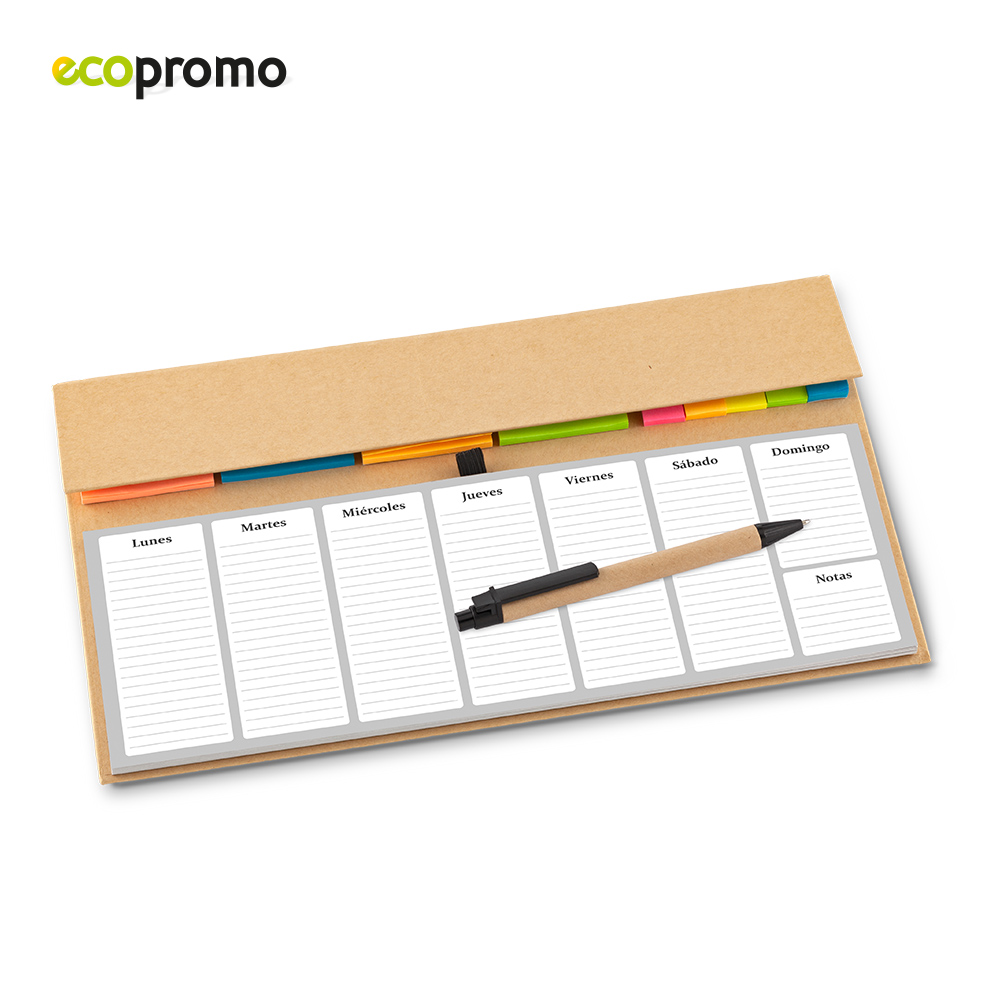 Planeador con tapa dura, 52 hojas. Incluye bolígrafo y juego de 9 stickies de colores.
