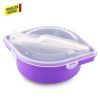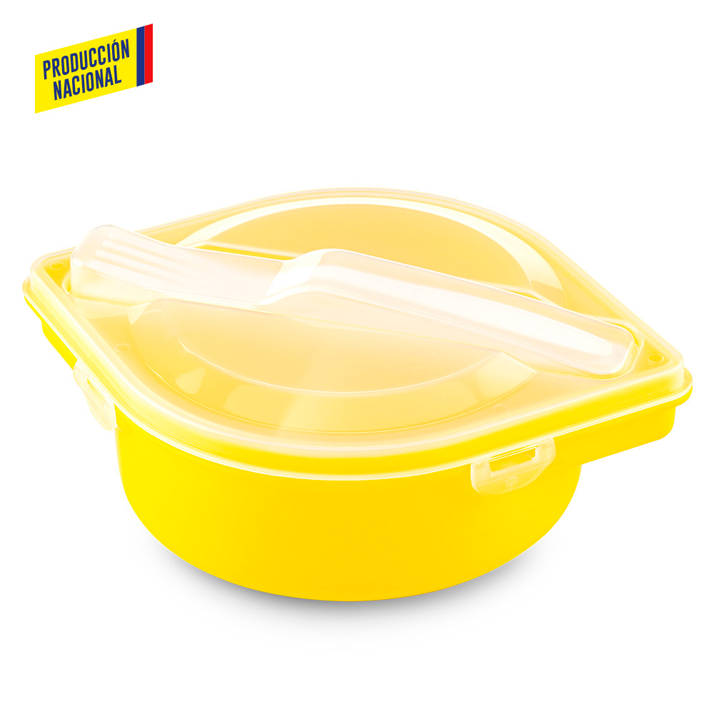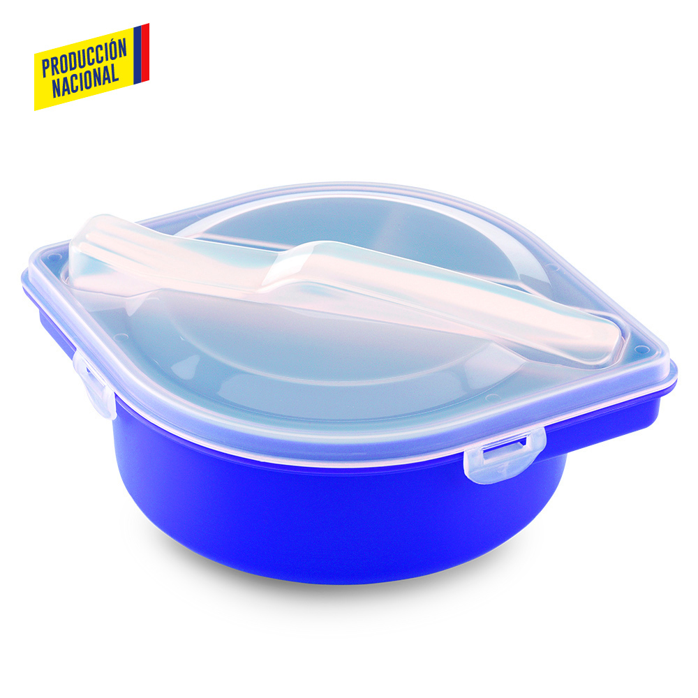 Set portacomida en PP con juego de cubiertos plástico. Cierres de seguridad.