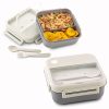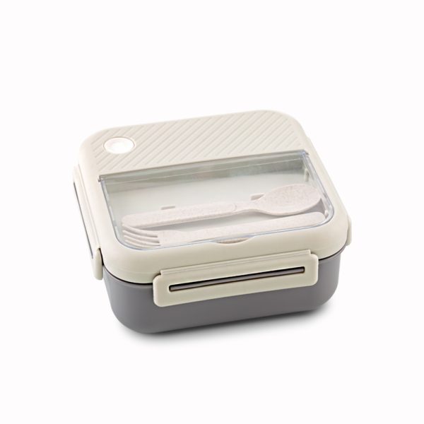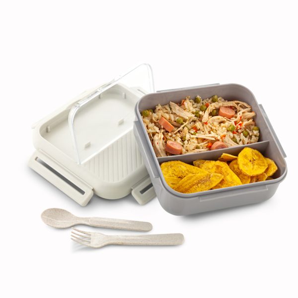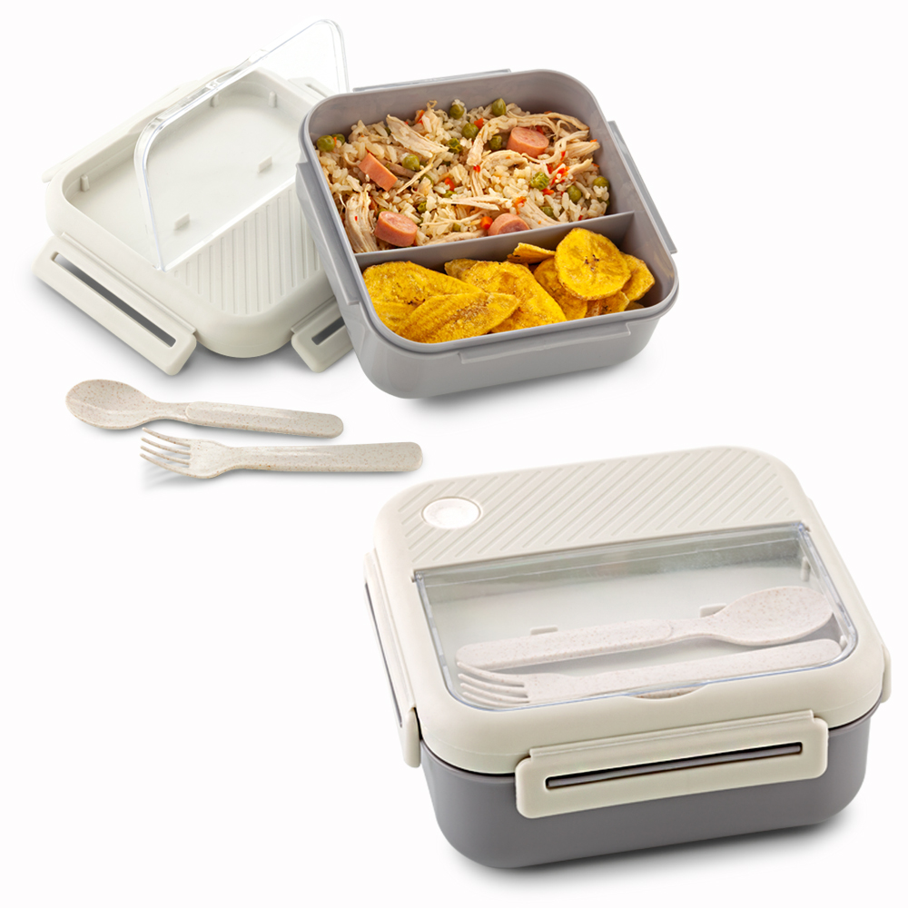 Portacomidas plástico con dos compartimientos. Incluye cuchara y tenedor.