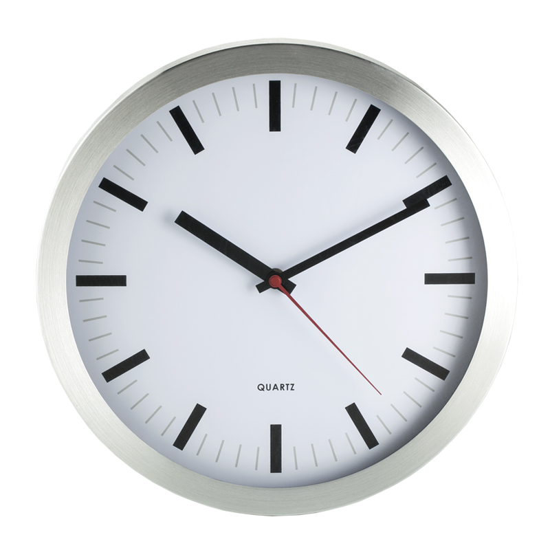 Reloj de pared en aluminio. 1 pila AA no incluida. Incluye mecanismo. Empaque caja Individual.