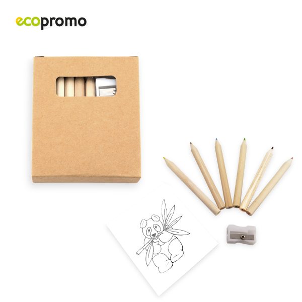 Set de 6 colores con block impreso para colorear y tajalápiz plástico.