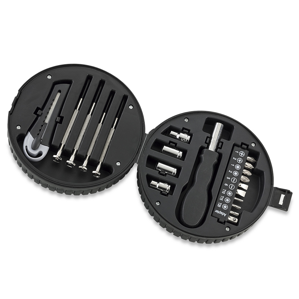 Set de herramientas de 20 piezas en estuche plástico. Cierre a presión. Empaque Caja Individual.