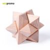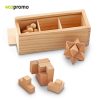 Set de 3 juegos de habilidad en madera natural. Presentado en caja de madera con compartimentos interiores y tapa deslizante. Empaque caja individual.