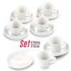Set de seis platos y seis tazas de 1.5oz en porcelana. Empaque caja individual.