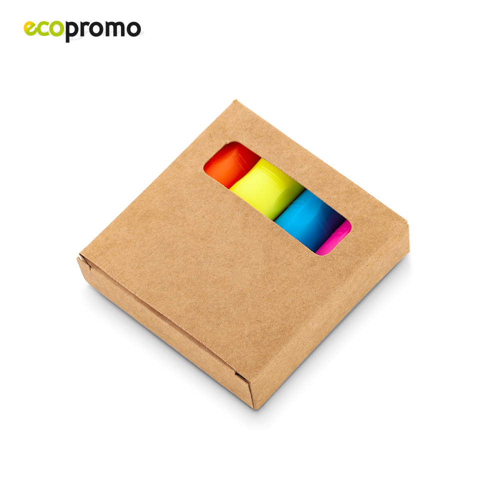 Set de cuatro mini resaltadores de tinta. Empaque caja individual en cartón.