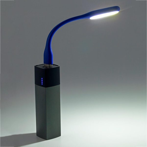 Set de mini lámpara flexible, ventilador USB y cable de carga micro USB 2-1 y tipo C en estuche de poliéster 210D con cremallera. Empaque caja individual.