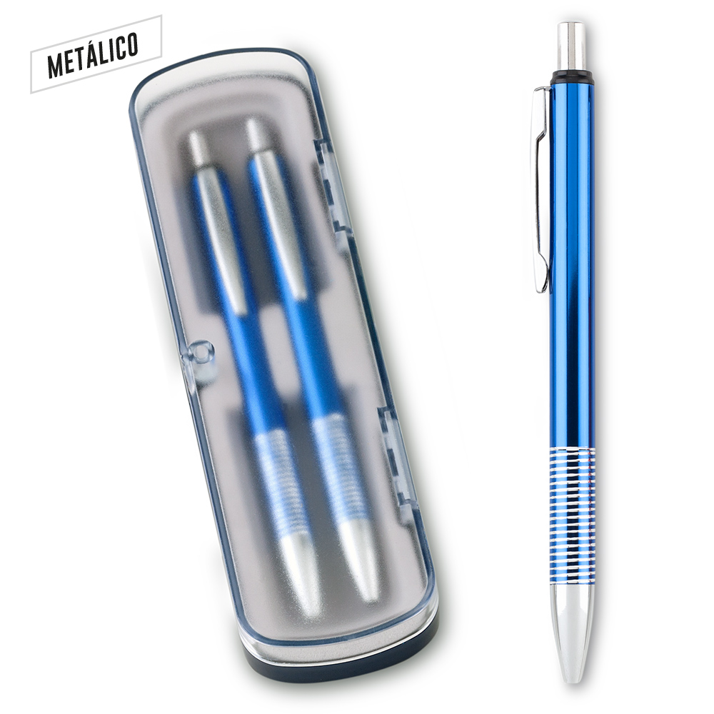 Set de bolígrafo y portaminas metálicos en estuche plástico. Mina 0.5 mm. Empaque Caja Individual.