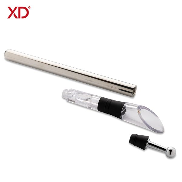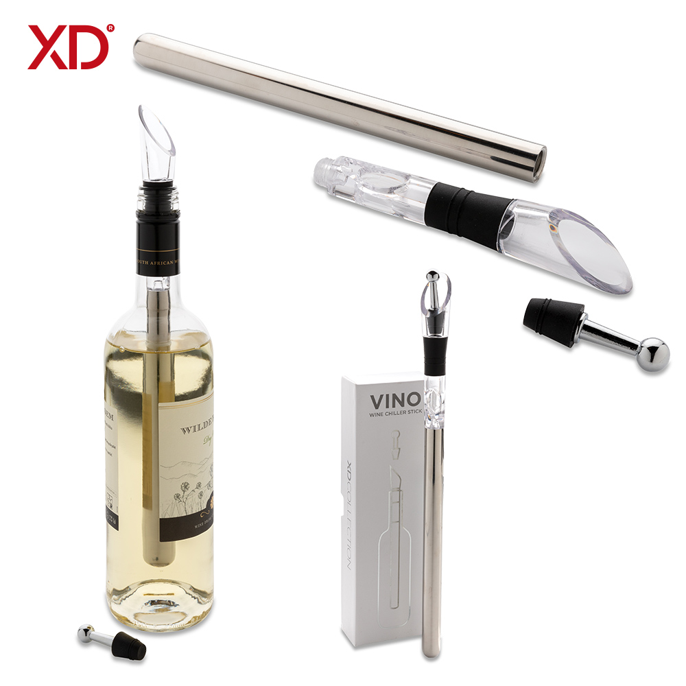 Enfriador de vinos, entre 2-3h de frío aproximadamente. Con vertedor anti goteo y aireador incorporado que asegura un flujo constante de vino y al mismo tiempo permite que el vino respire. Acero inoxidable y acrílico. Empaque caja individual.