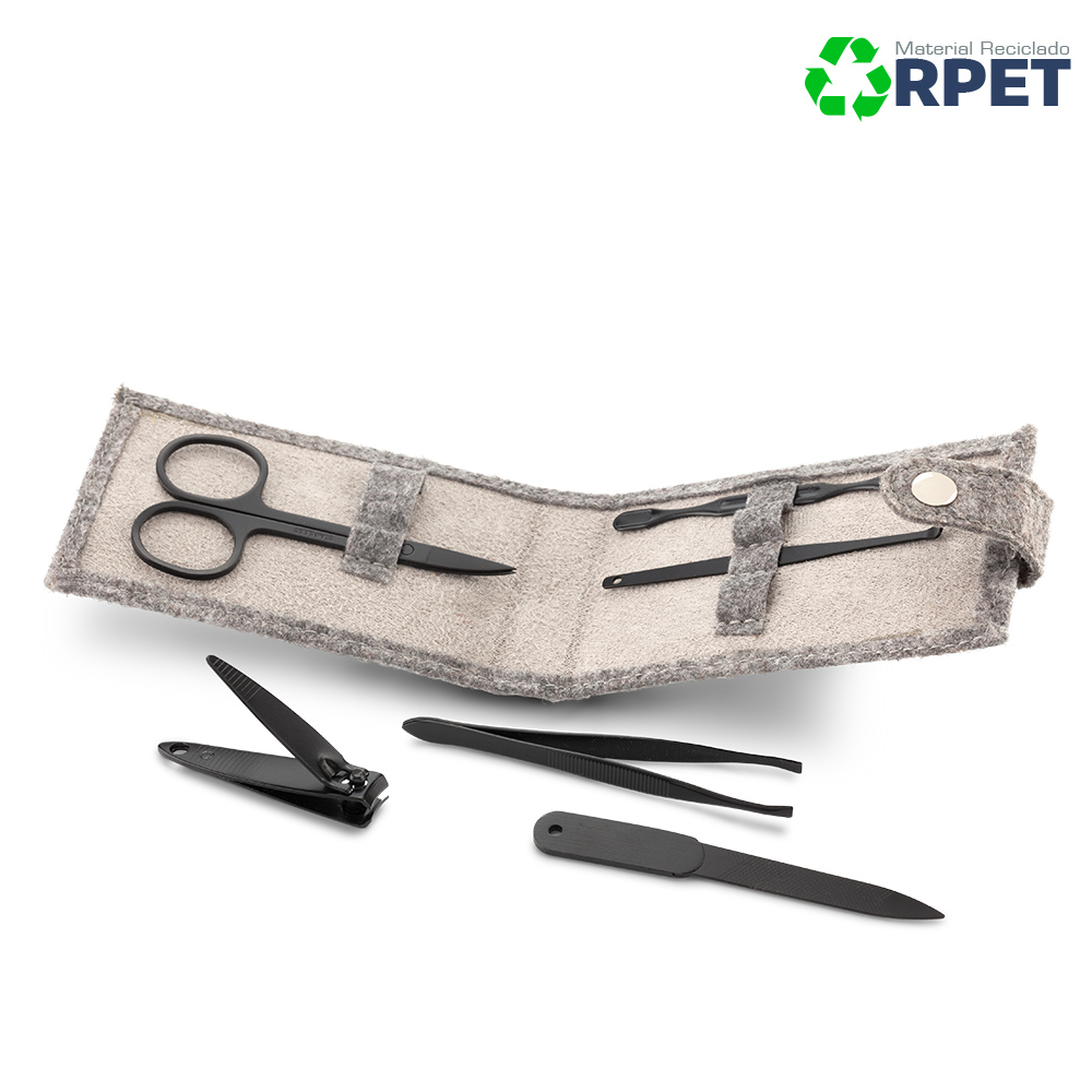 Set de manicure de 6 piezas con estuche en poliéster reciclado RPET.